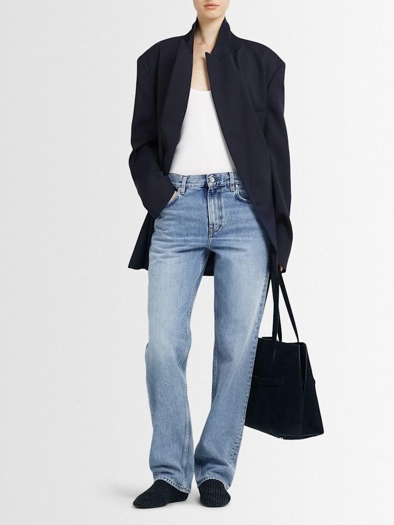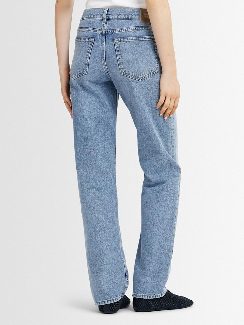 低腰棉质直筒牛仔裤 - 蓝色 - 女士 - Toteme - 正面纽扣和隐藏式拉链开合.