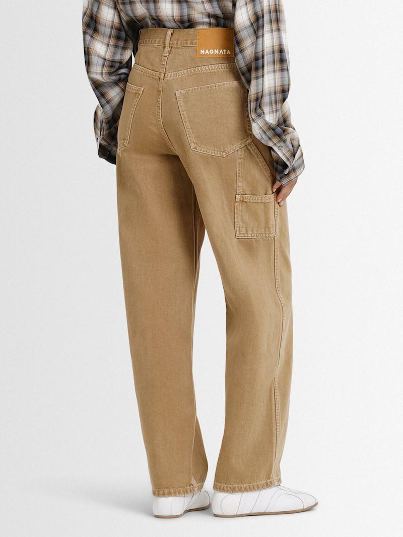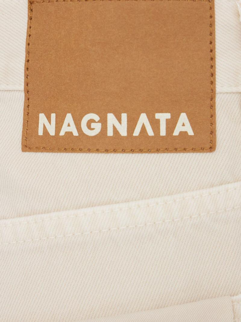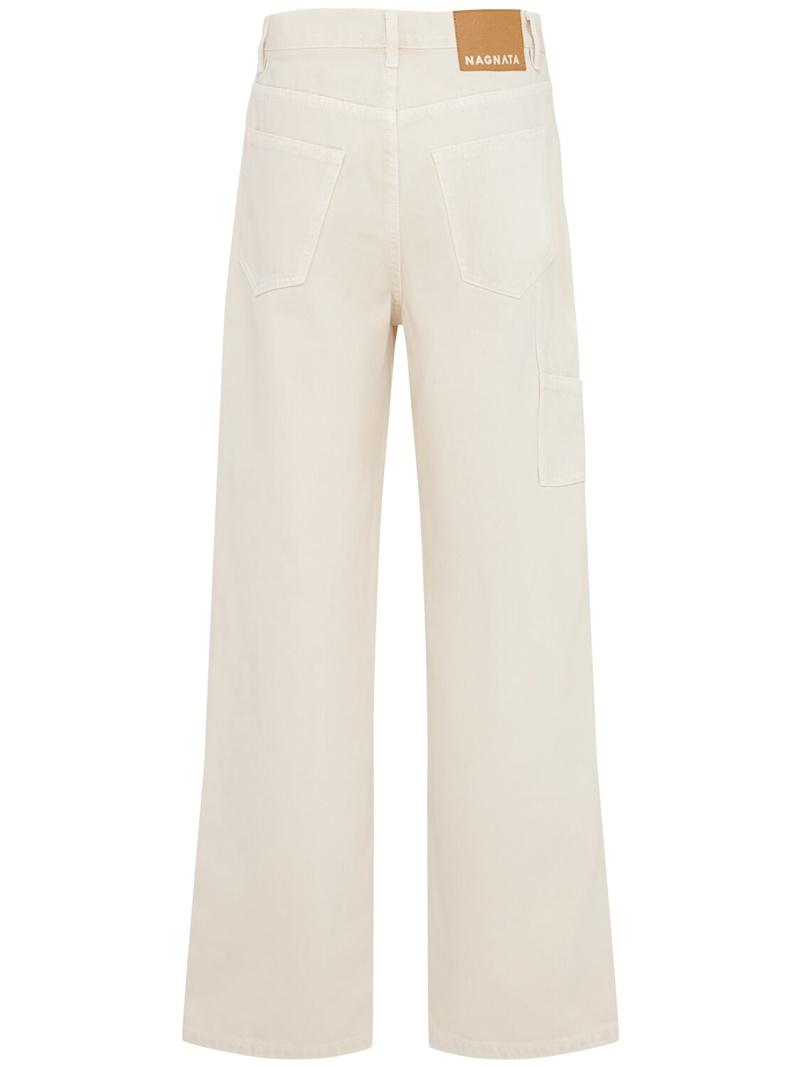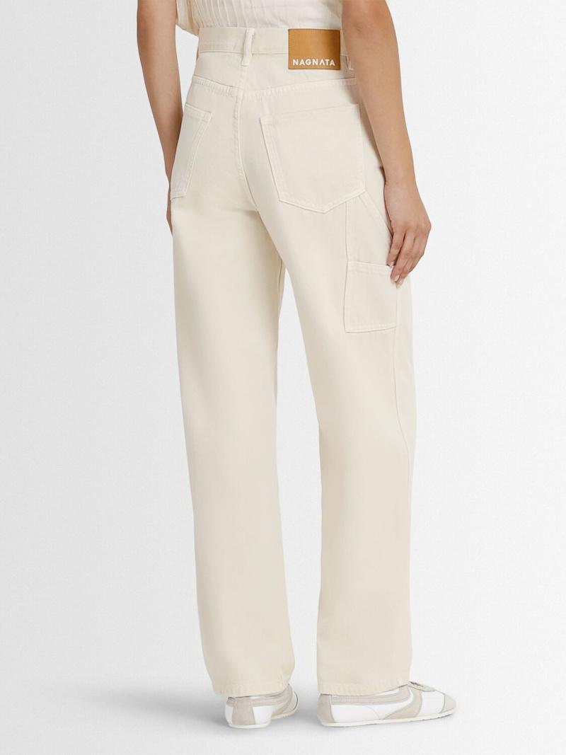 植物染色工装牛仔裤 - Bone White - 女士 - Nagnata - 正面隐藏式纽扣开合.