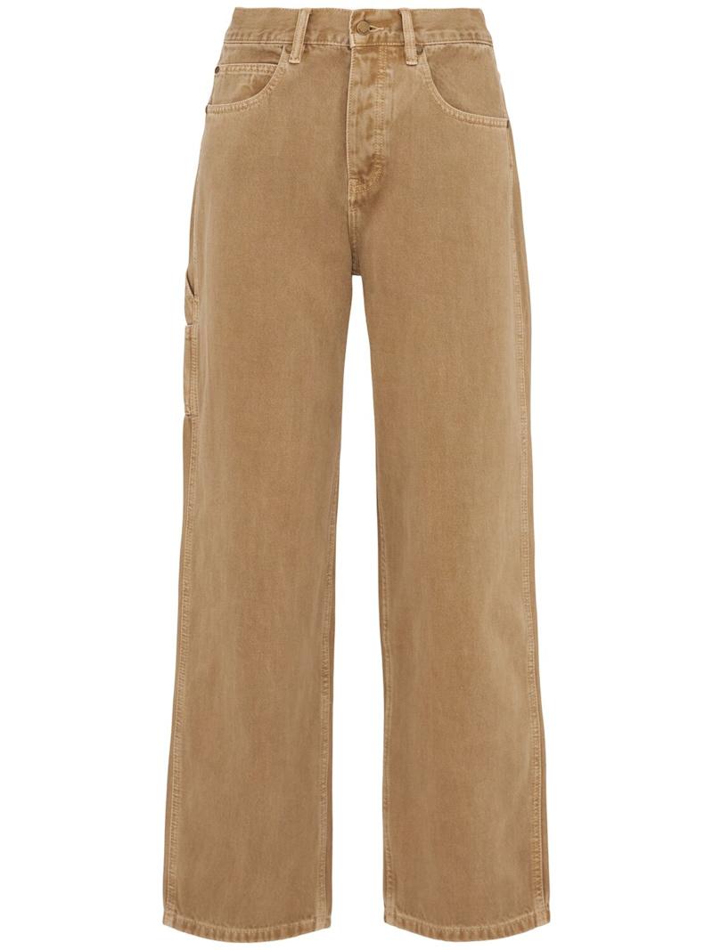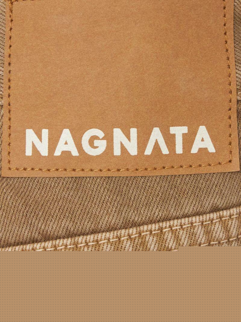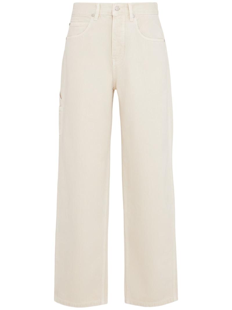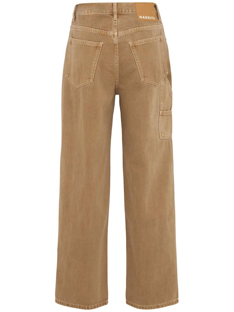 植物染色工装牛仔裤 - Bone White - 女士 - Nagnata - 正面隐藏式纽扣开合.