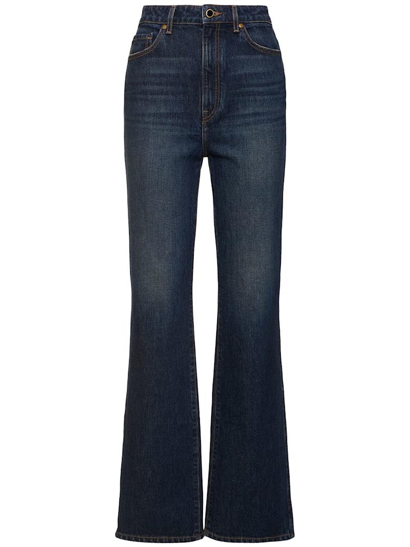 Danielle高腰直筒牛仔裤 - 蓝色 - 女士 - Khaite - 正面纽扣和隐藏式拉链开合.
