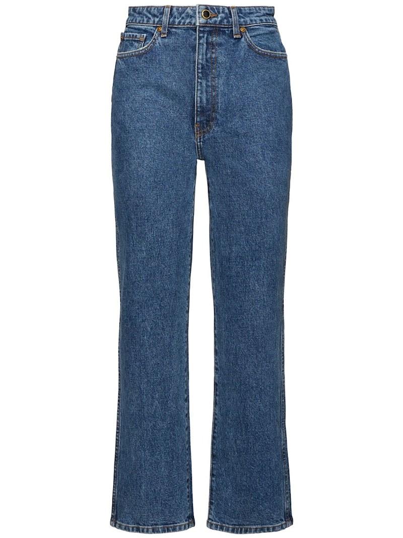 Abigail高腰直筒牛仔裤 - 蓝色 - 女士 - Khaite - 正面纽扣和隐藏式拉链开合.