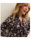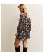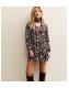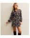 Brown Floral Satin Pussybow Mini Dress