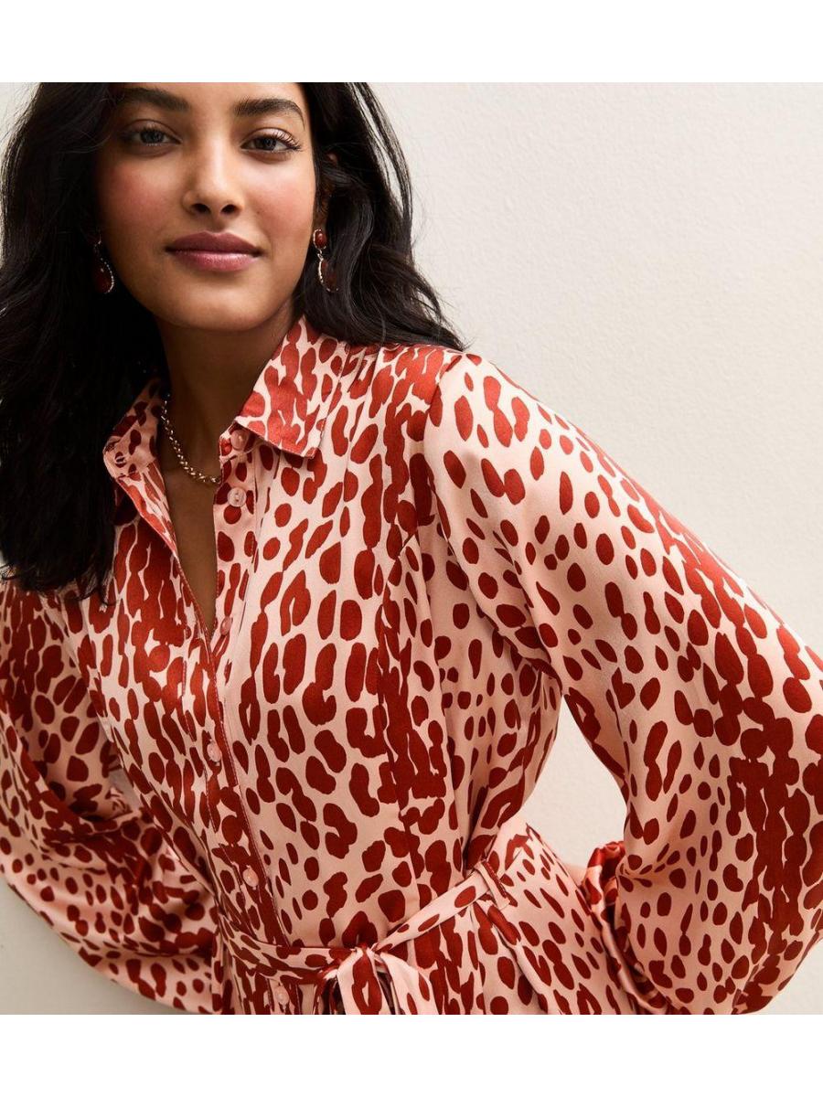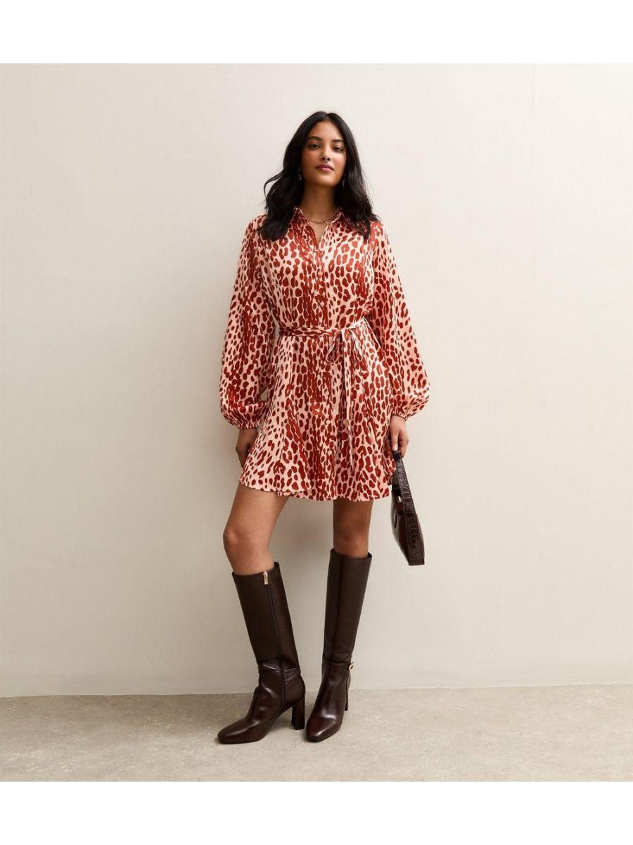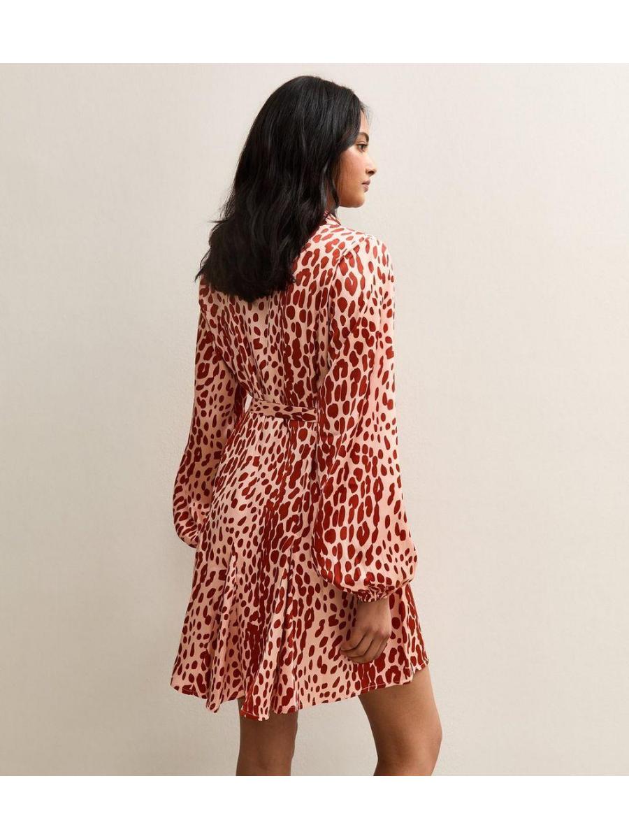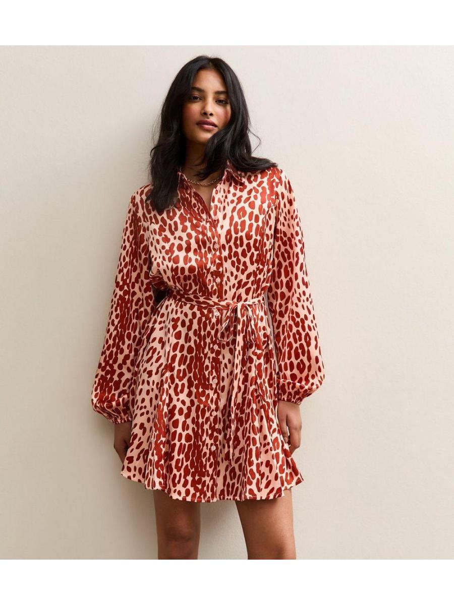 Pink Animal Print Satin Mini Shirt Dress