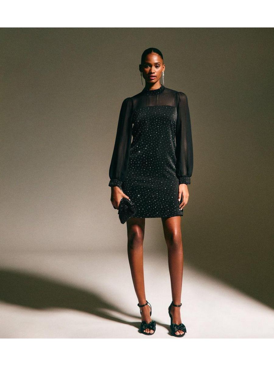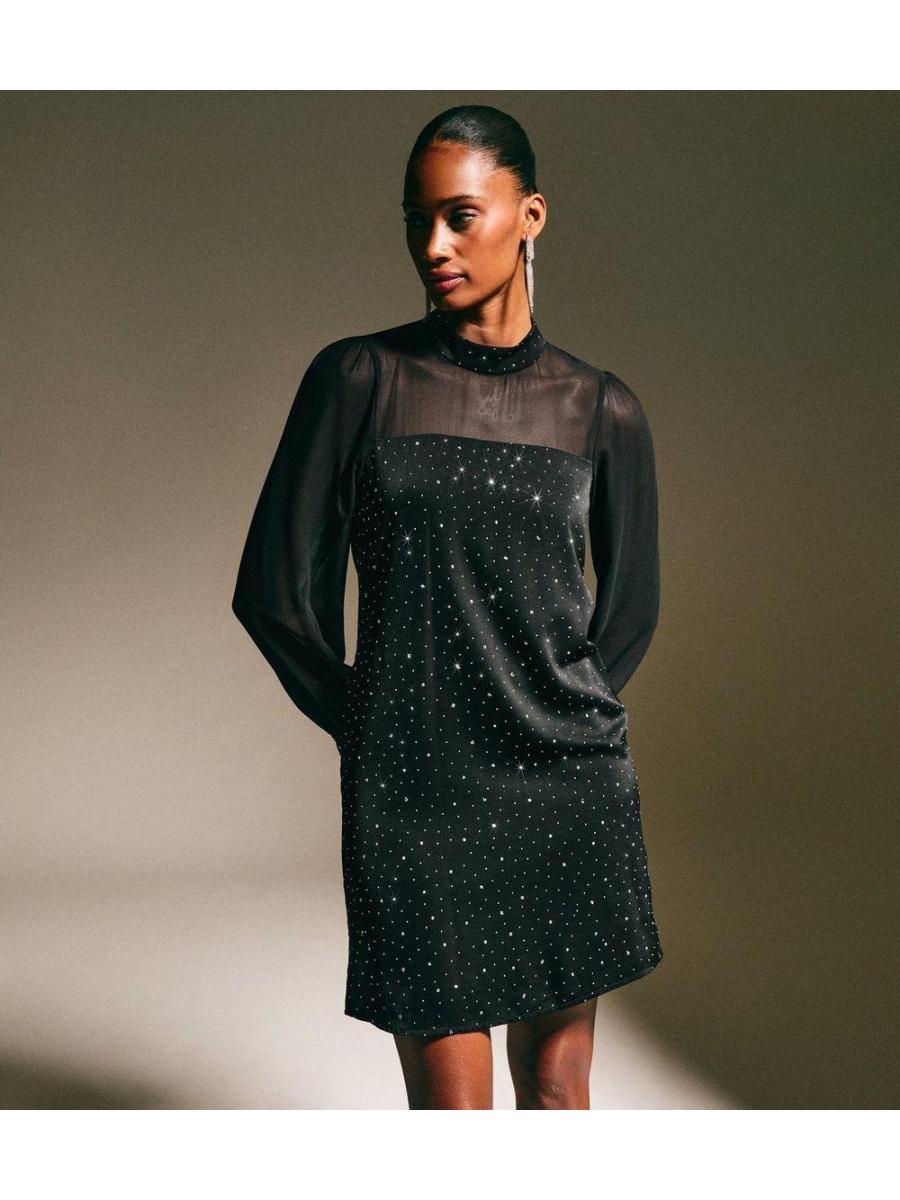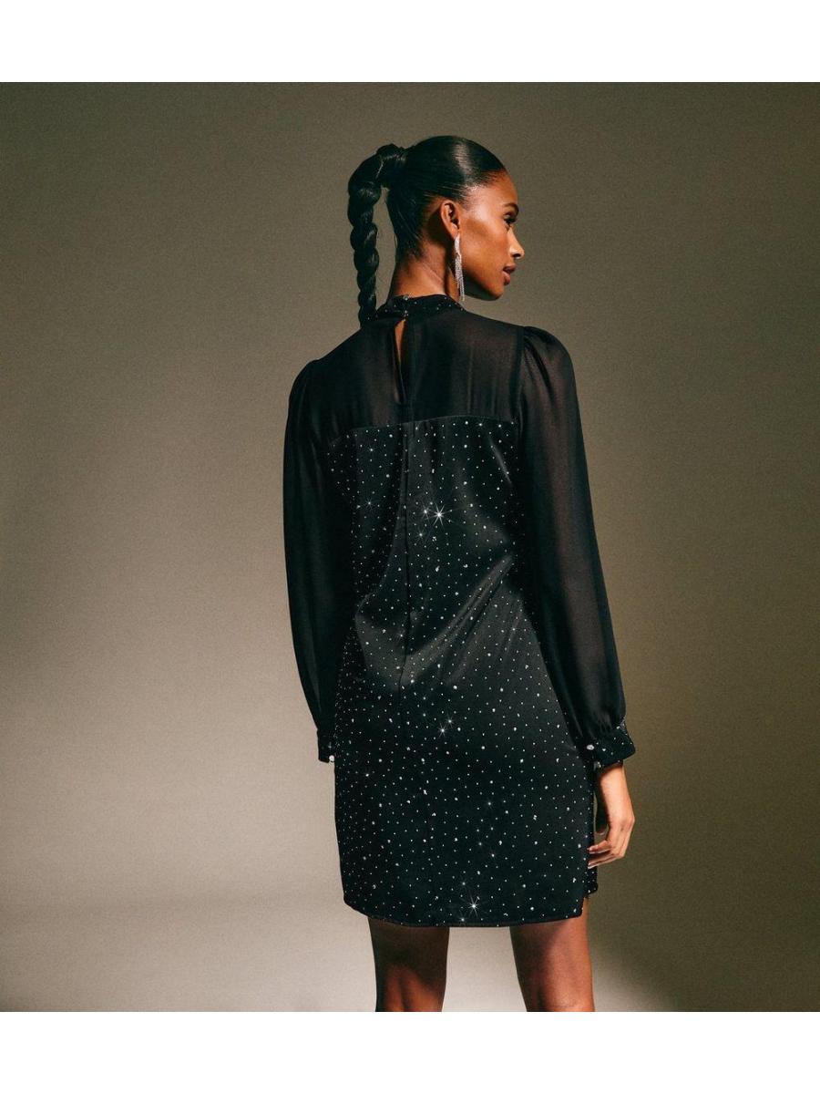 Black Sheer Panelled Diamante Embellished Mini Dress