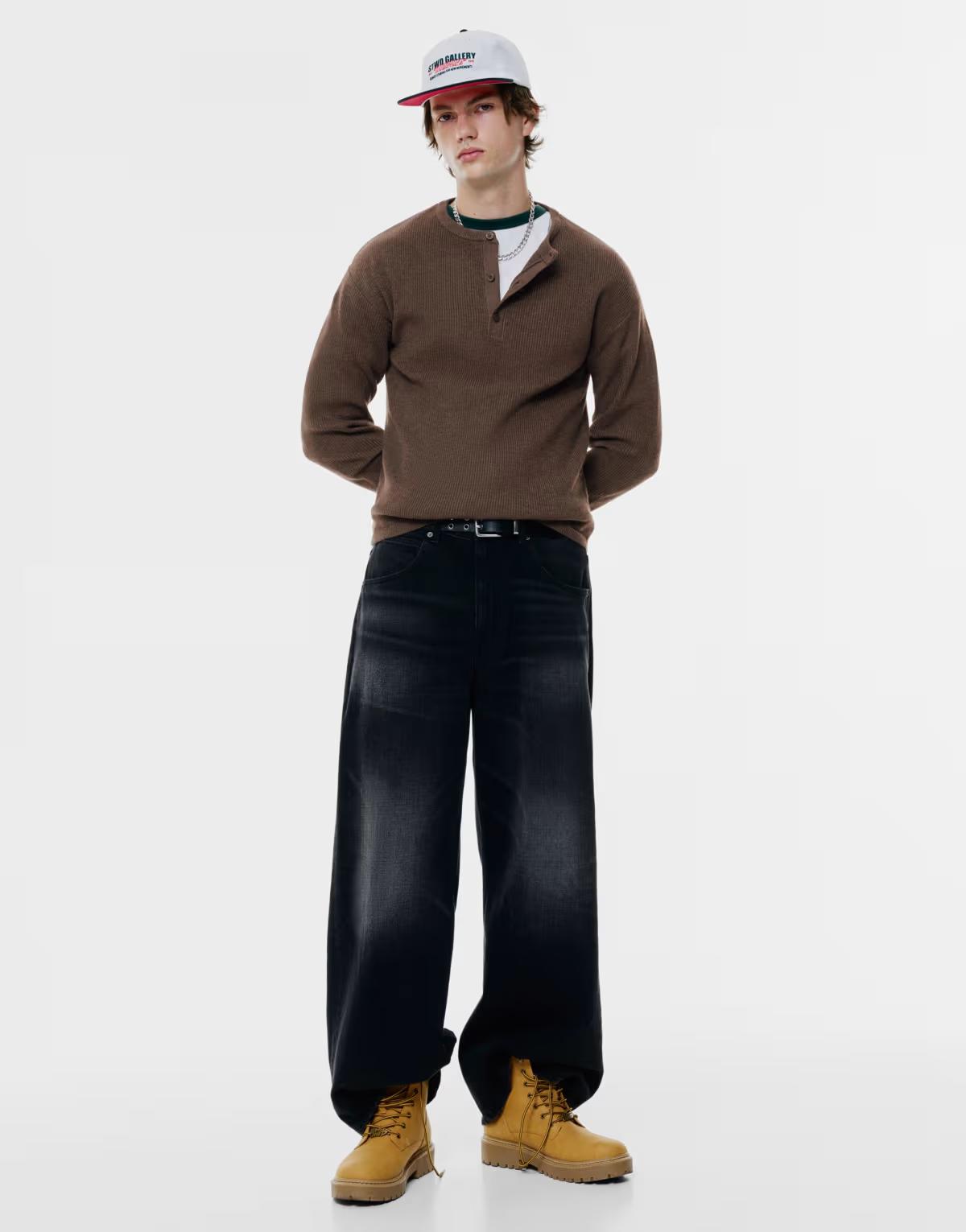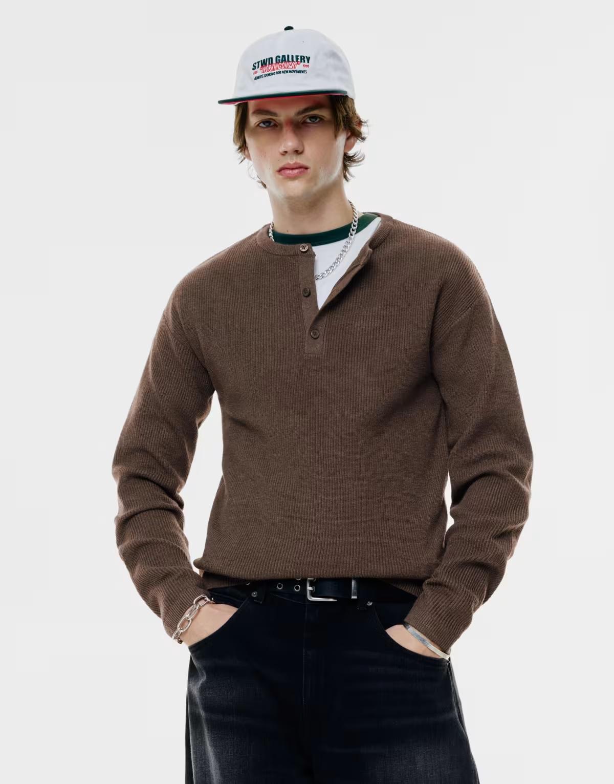 Pull&Bear Henley sweater in chocolate