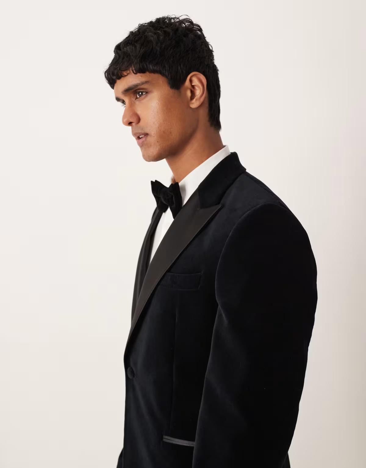 ASOS DESIGN smart slim suit tuxedo jacket in black cotton velvet