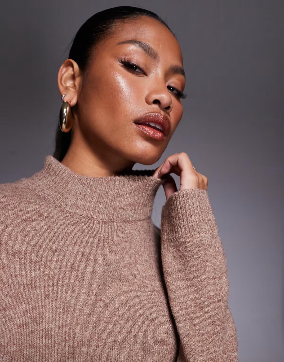 Kaiia exclusive knitted high neck skater mini dress in light brown