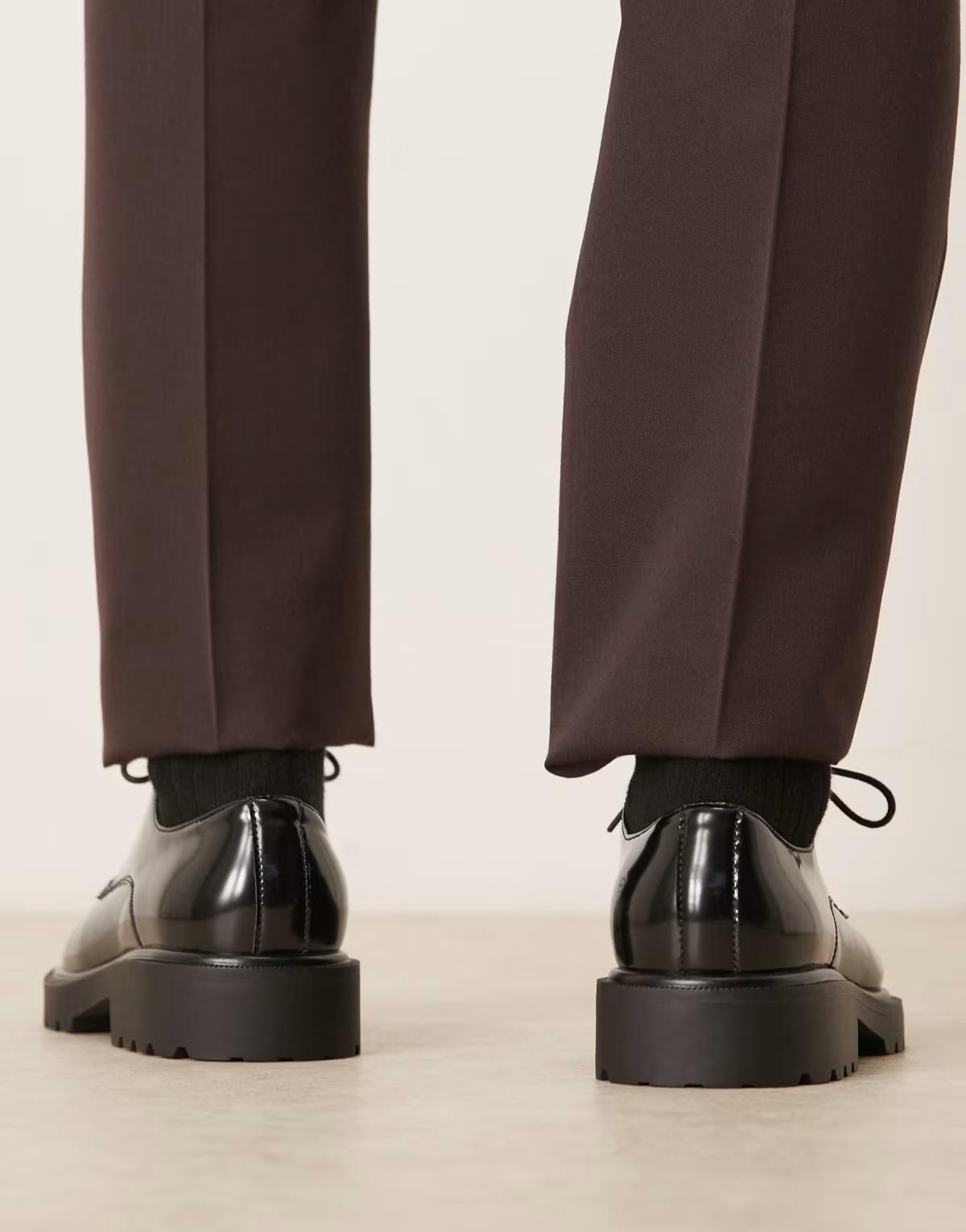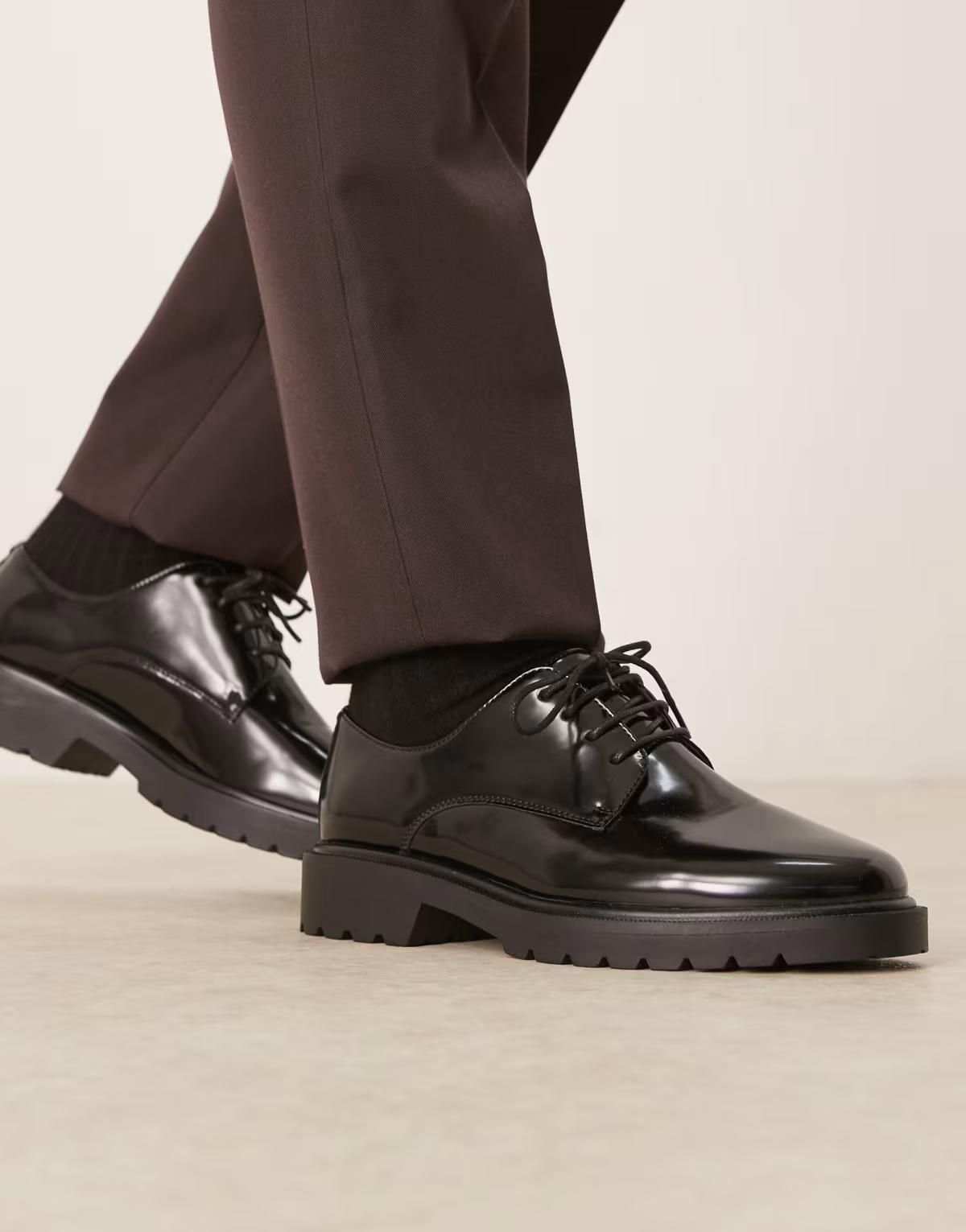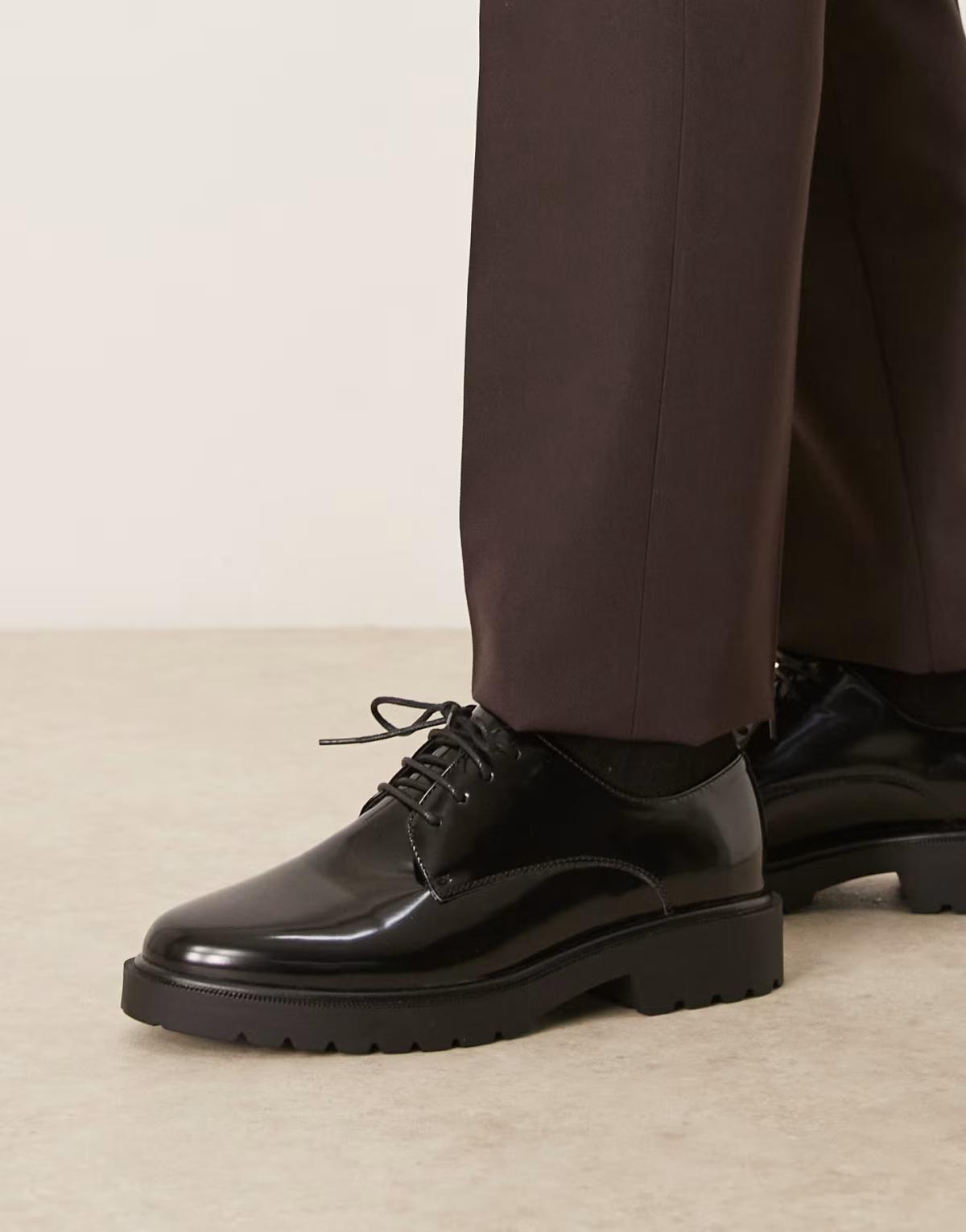 BrandThis is ASOS DESIGN – your go-to for all the latest trends, no matter who you are, where you’re from and what you’re up to. Exclusive to ASOS, our universal brand is here for you, and comes in Plus and Tall. Created by us, styled by you.Look After MeTreat with a suitable leather protector (not included) and avoid contact with liquidsAbout MeGlossy, patent upper