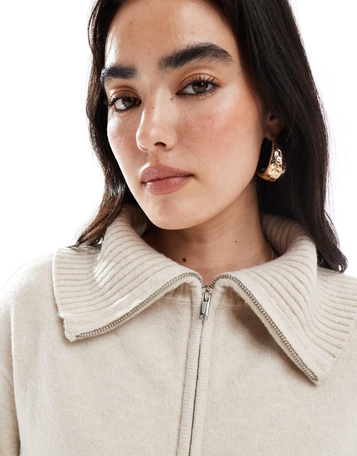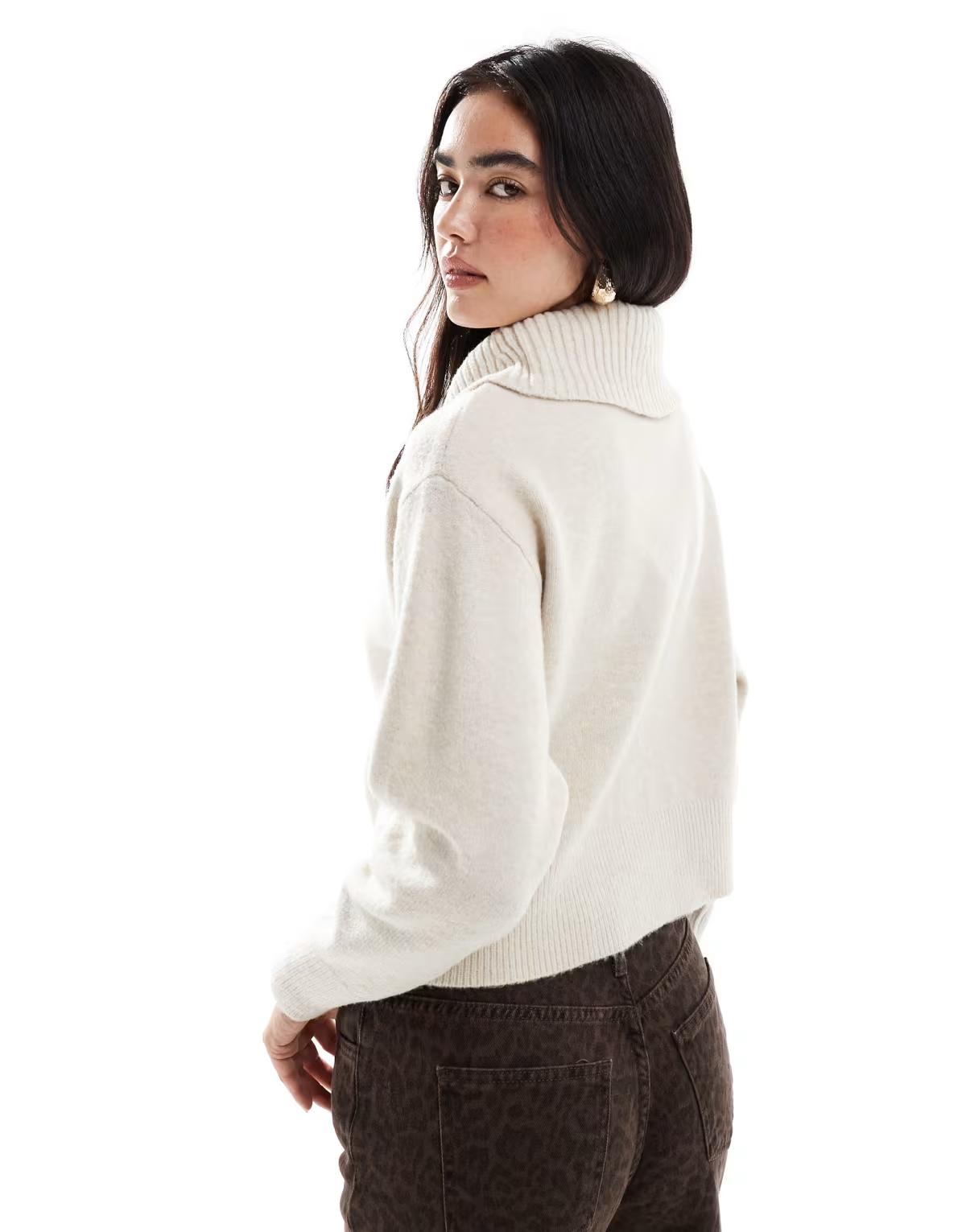 New Look half zip collar jumper in cream