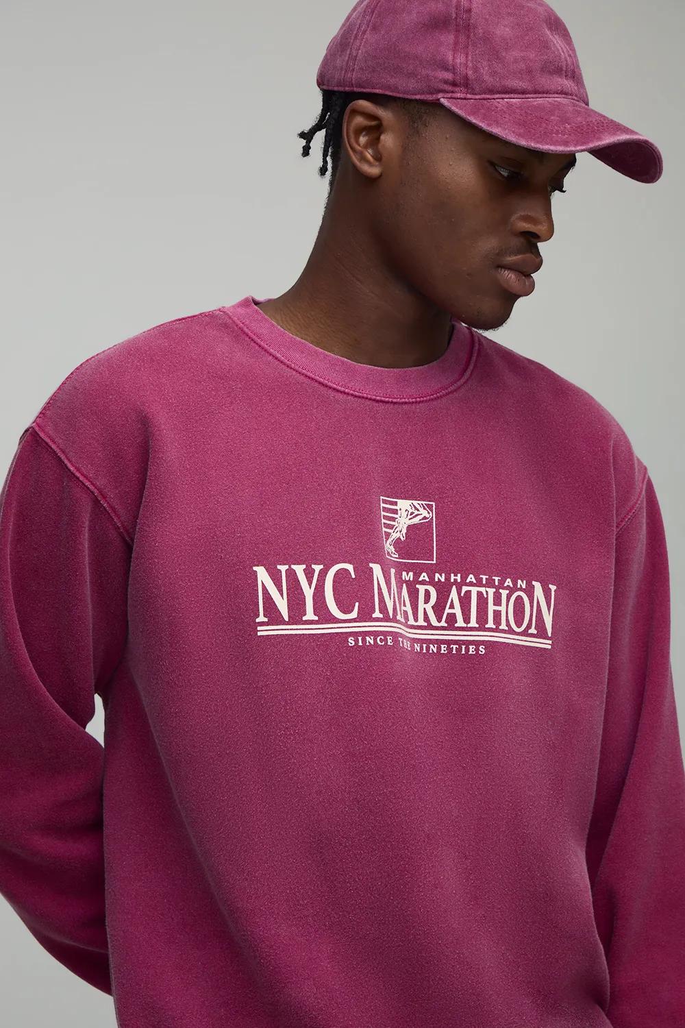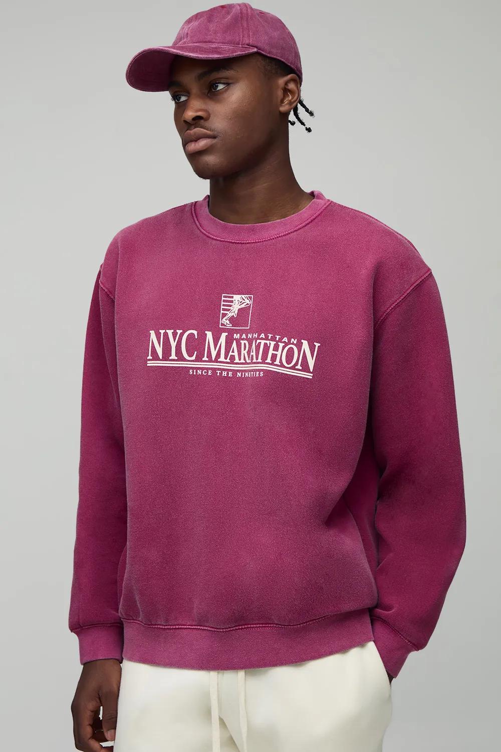 Hoodies & Sweatshirts | Oversized Boxy Extended Neck NYC Marathon Leisure Washed Sweatshirt | boohooMAN