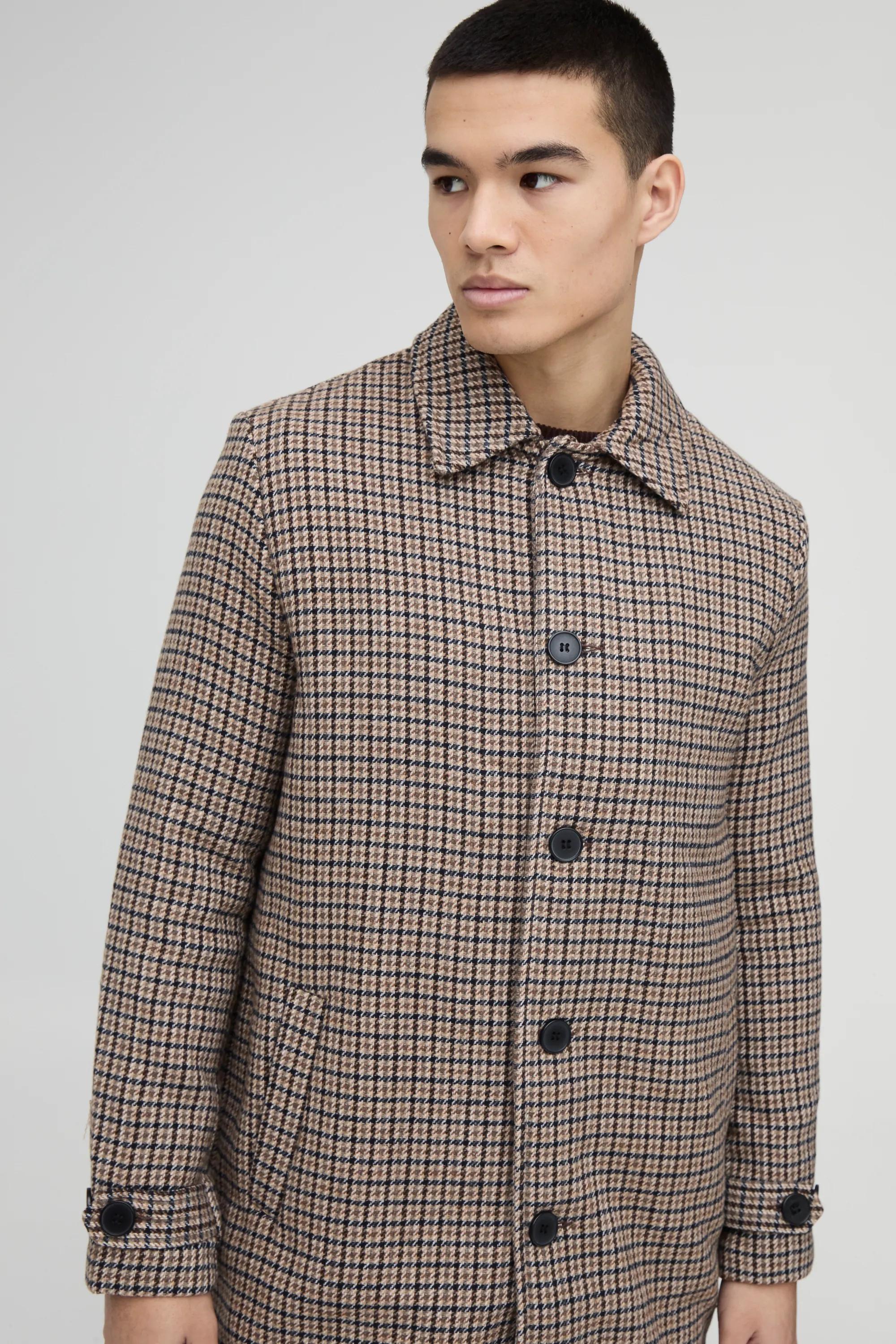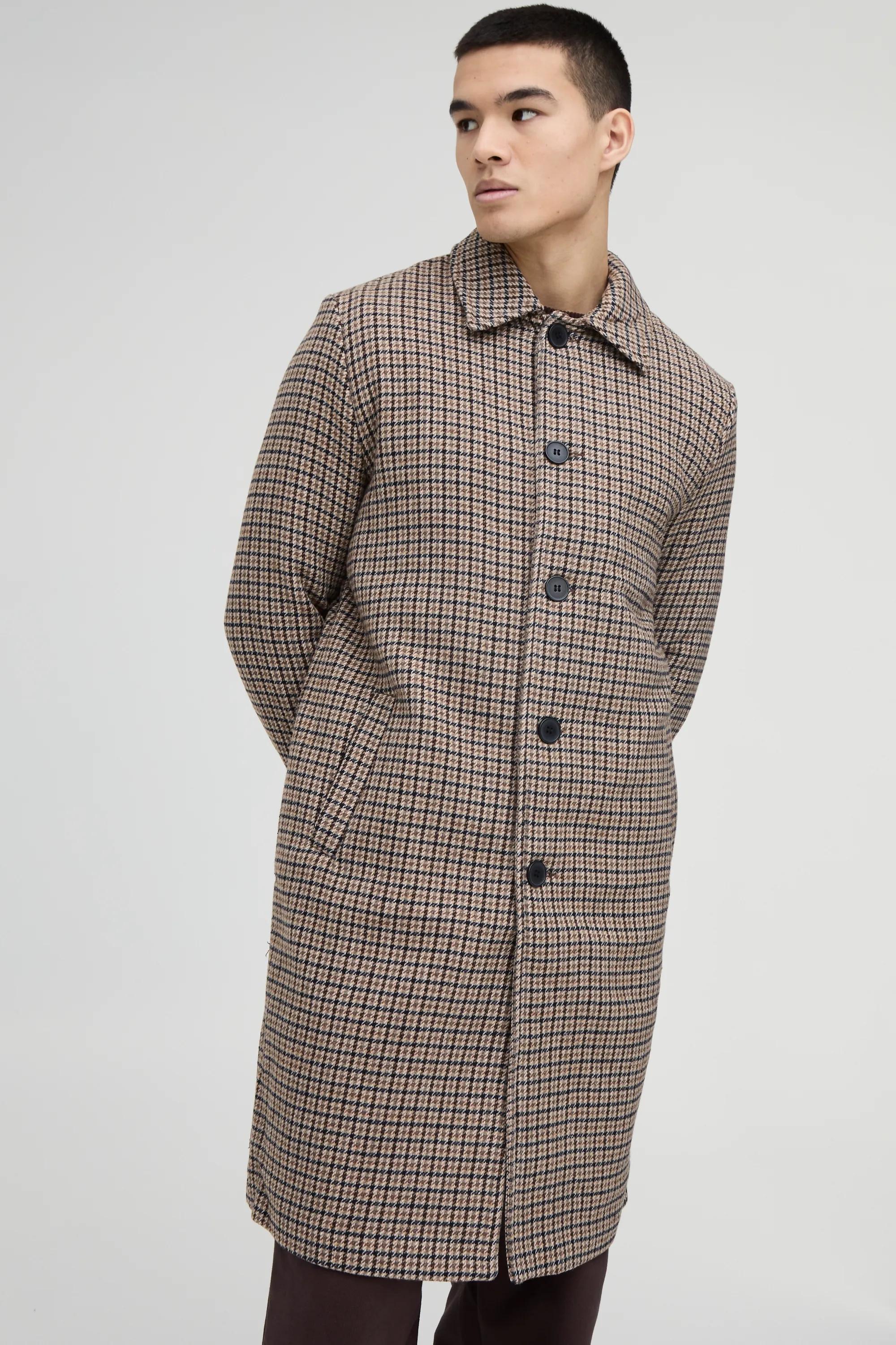 Jackets & Coats | Check Collared Overcoat In Brown | boohooMAN