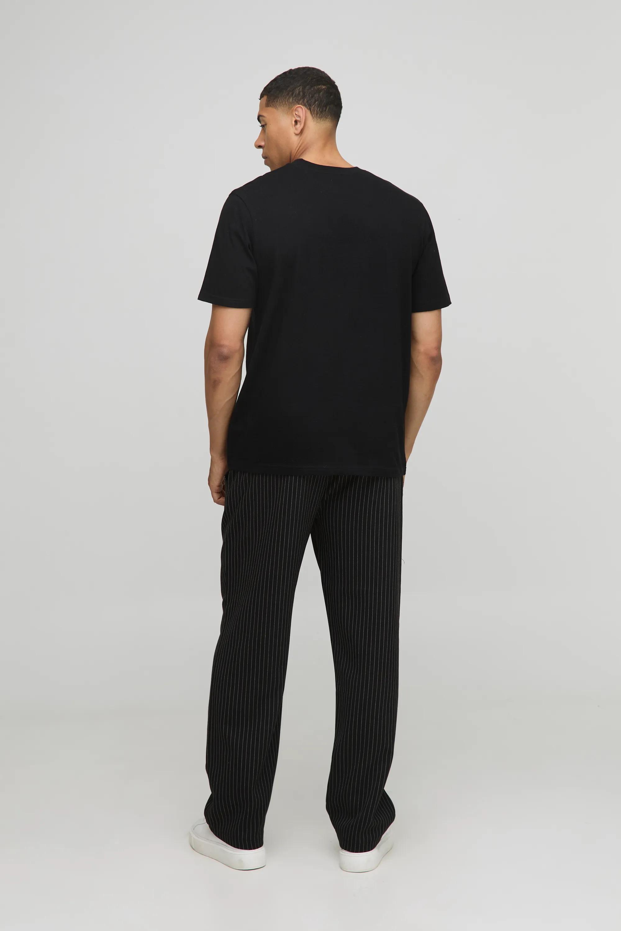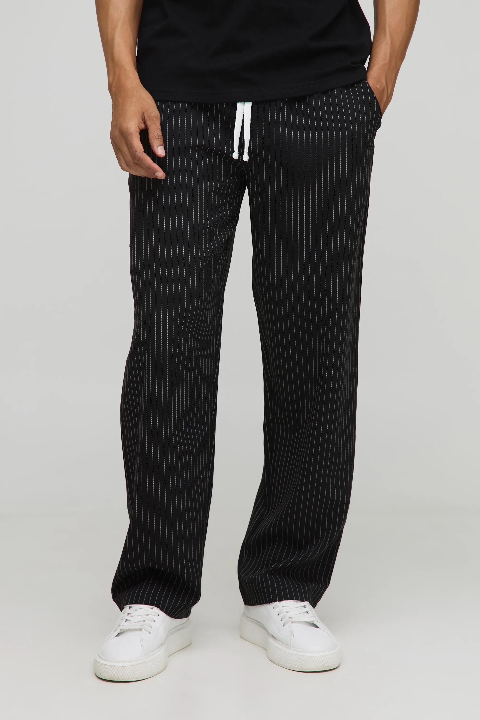 Trousers | Elasticated Waistband Relaxed Pinstripe Casual Trousers | boohooMAN