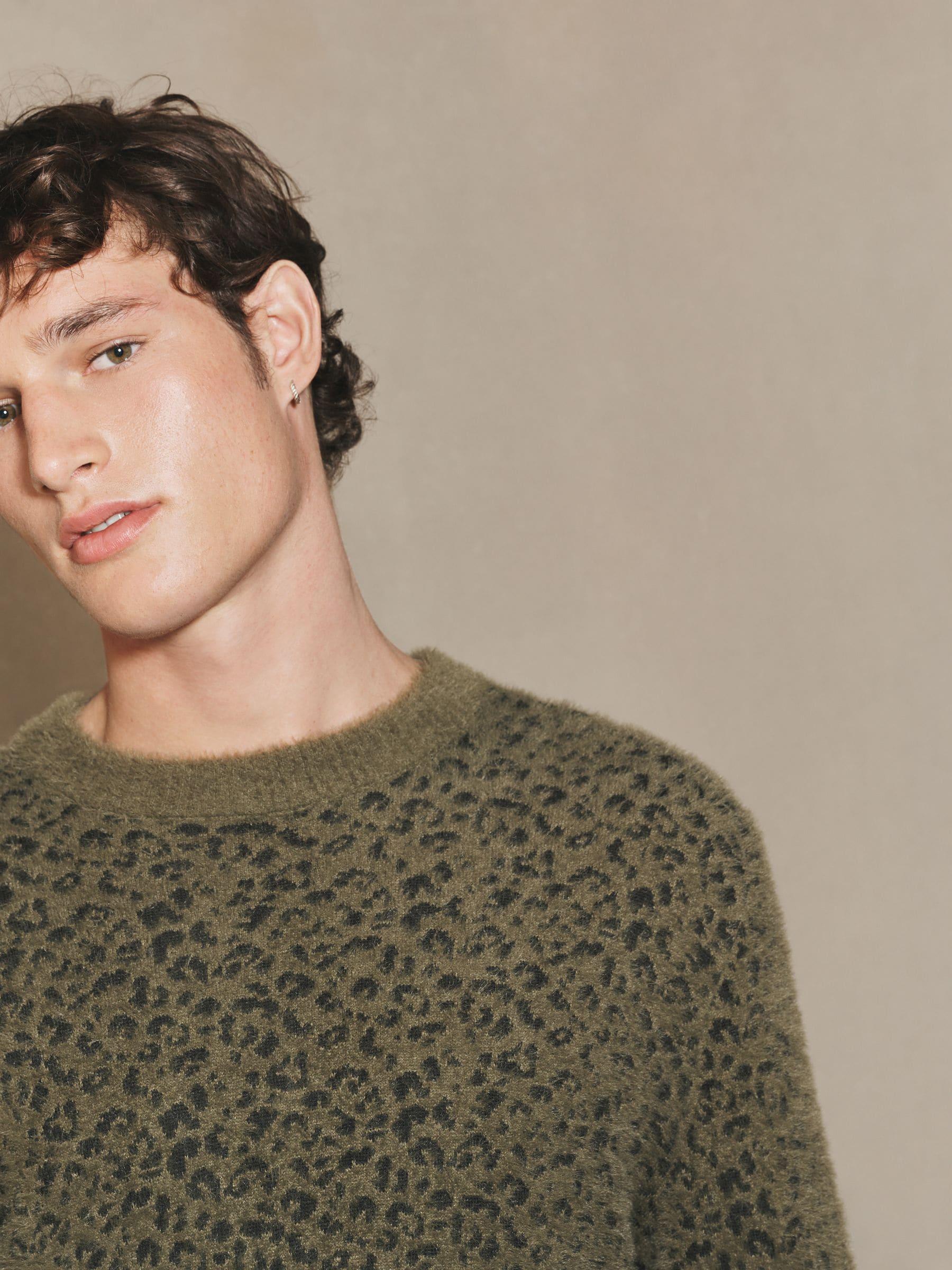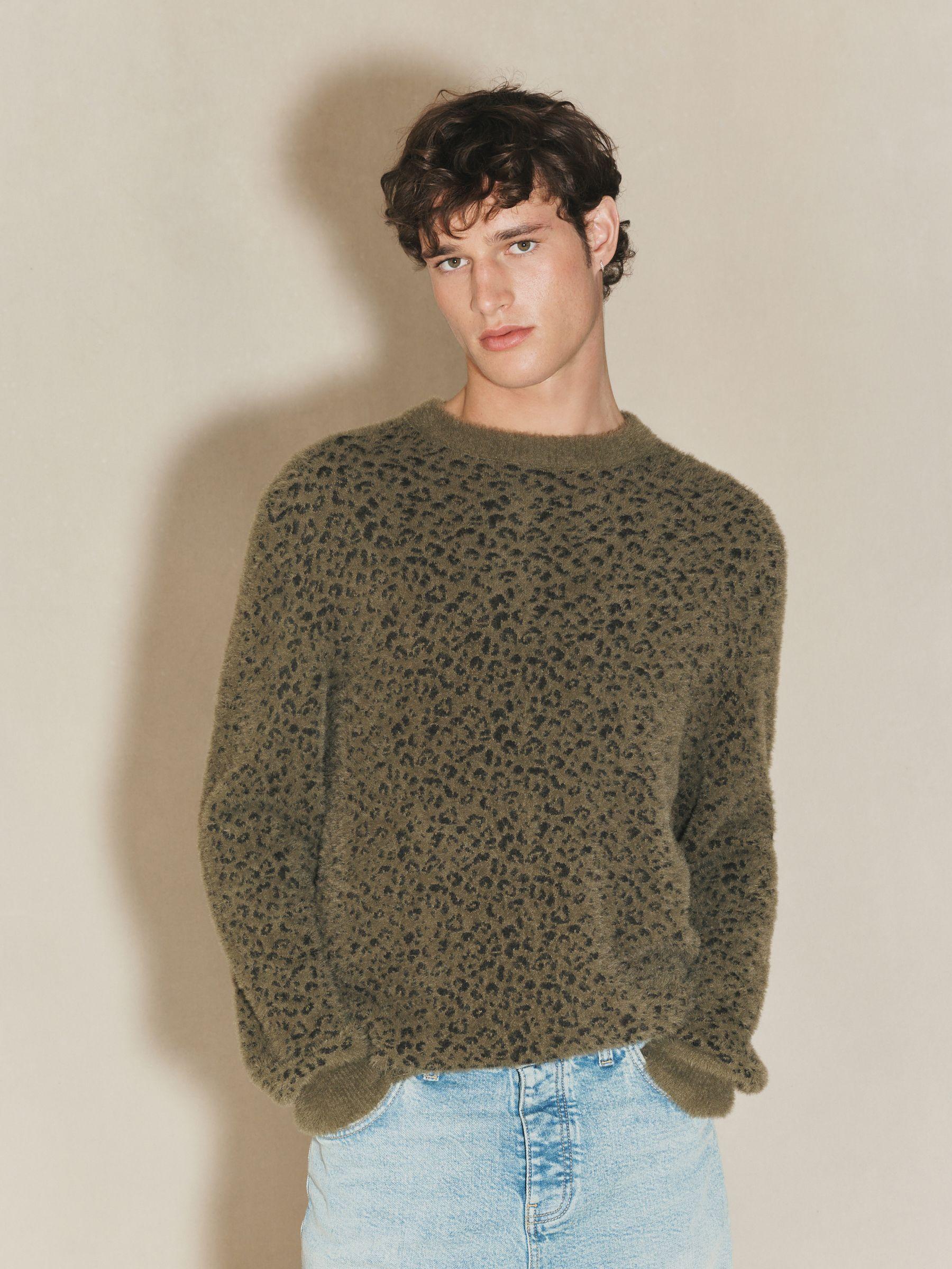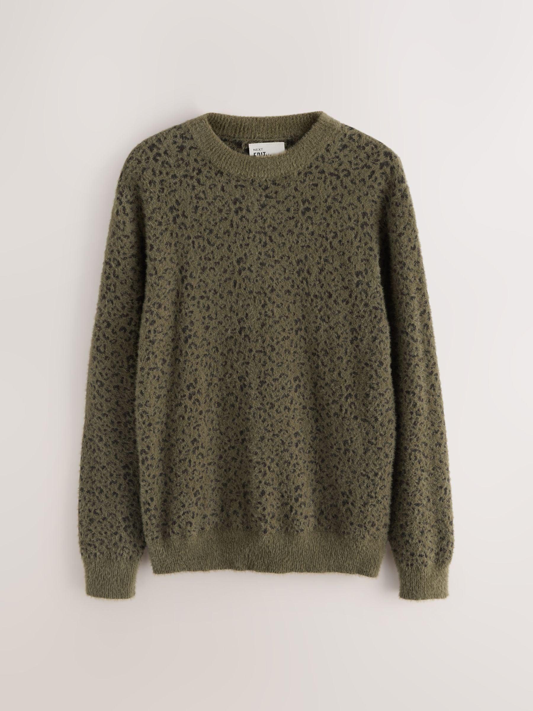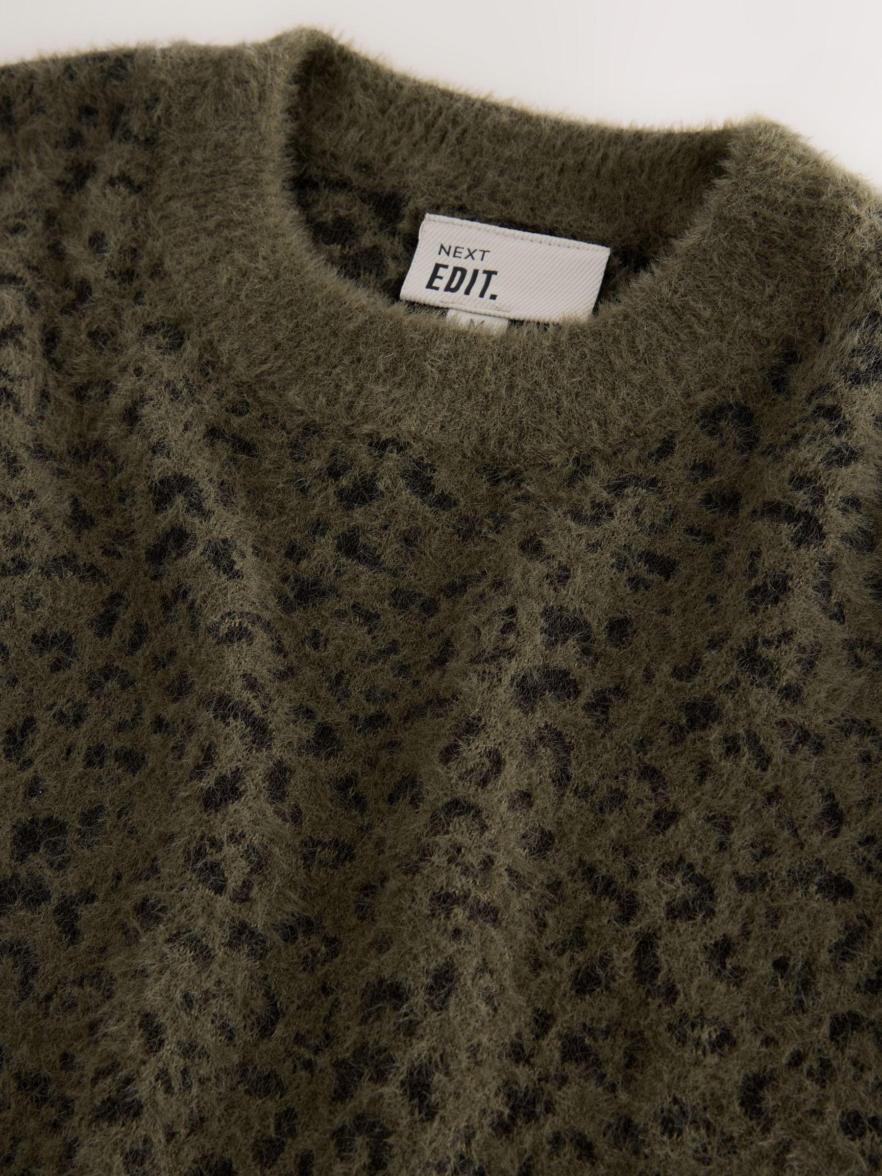 Green EDIT Long Sleeve Knitted Leopard Print Jumper