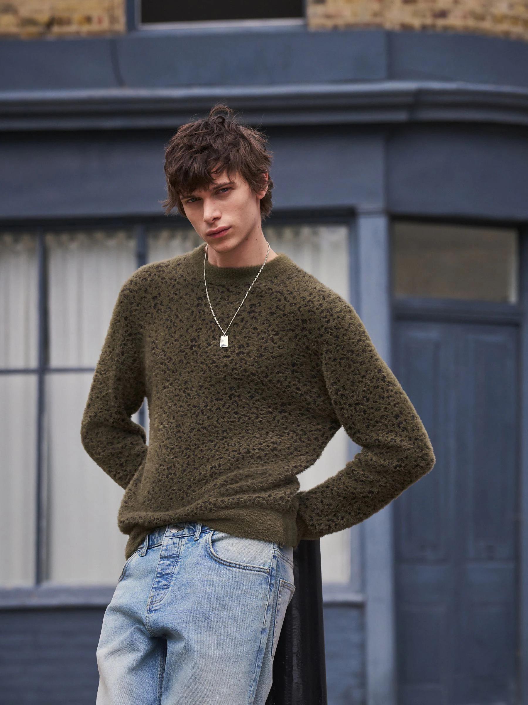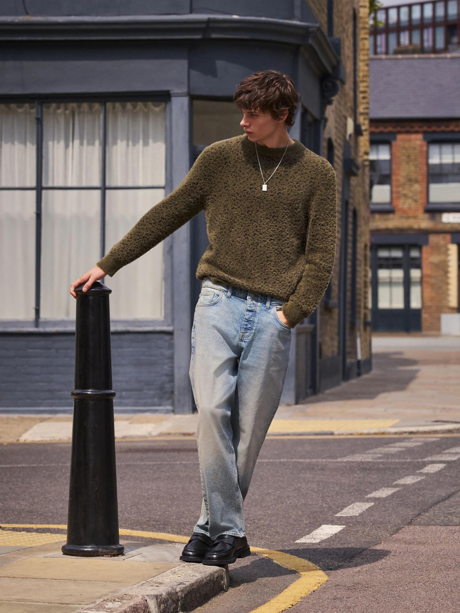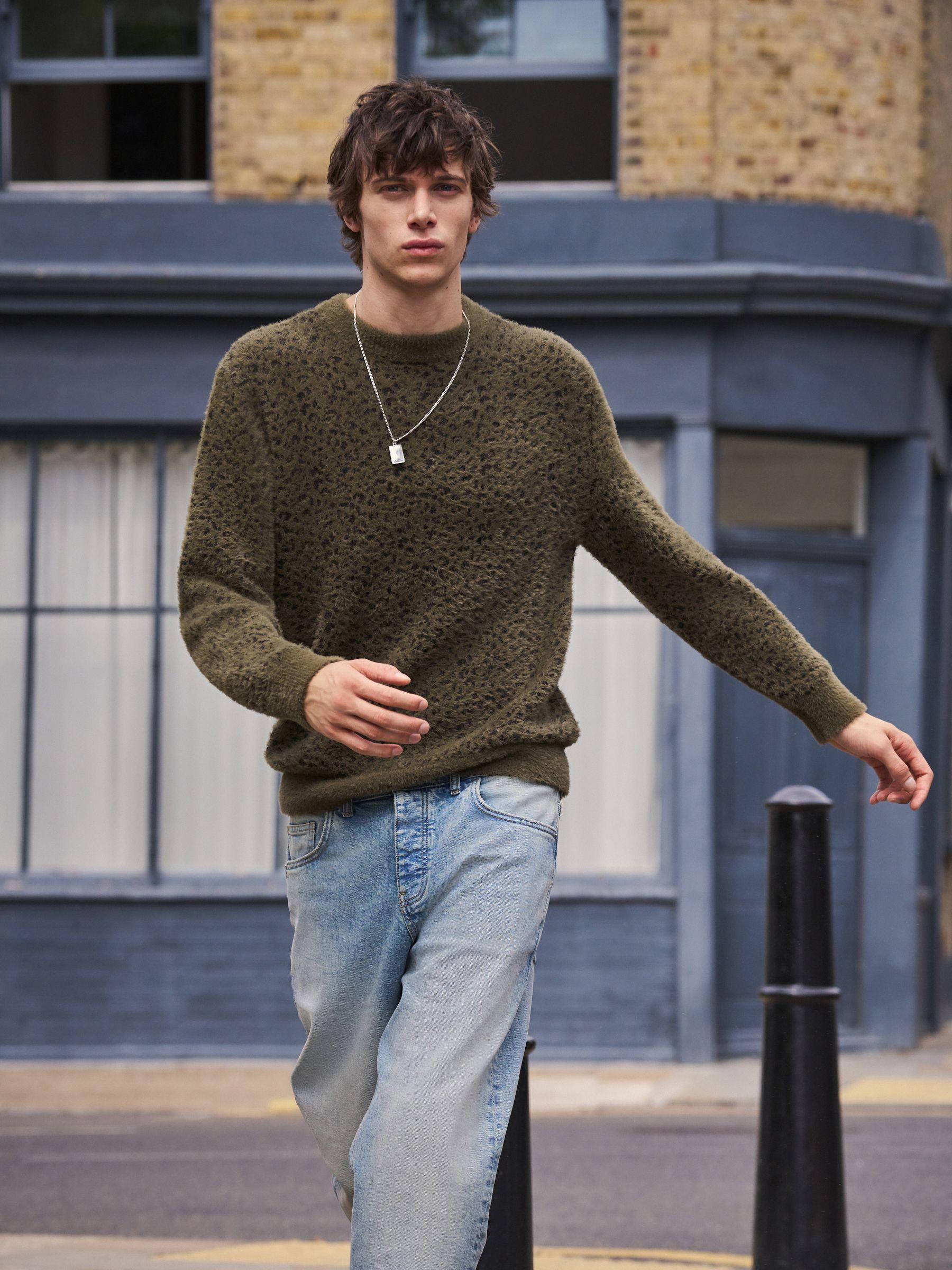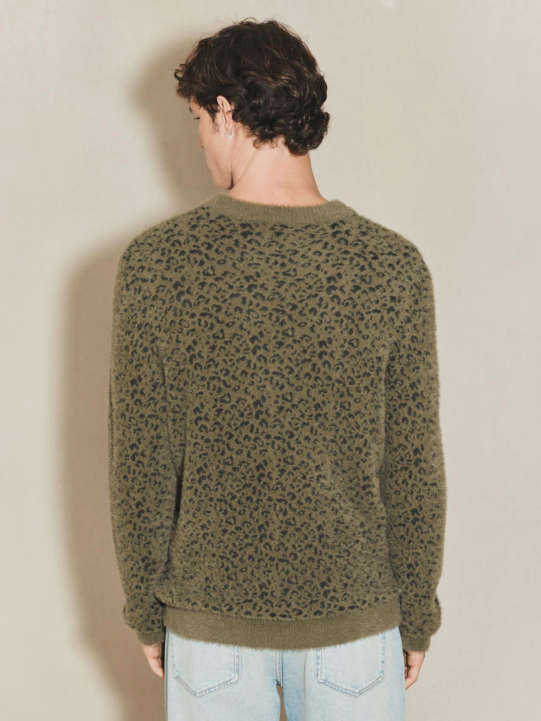 Green EDIT Long Sleeve Knitted Leopard Print Jumper