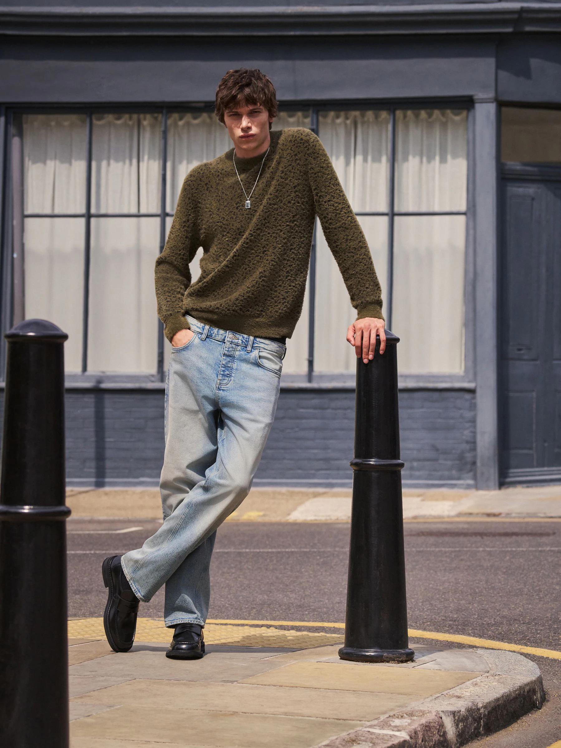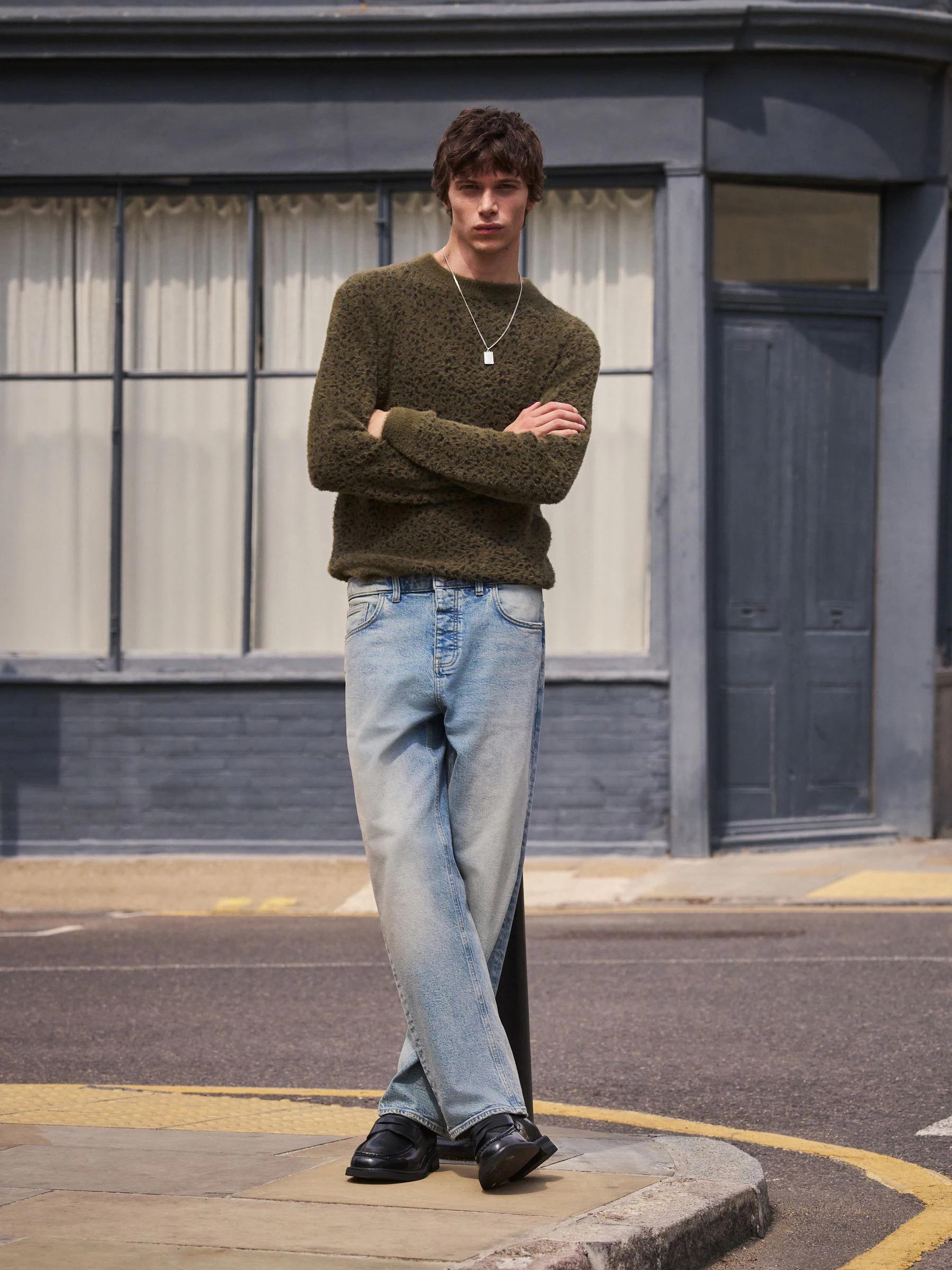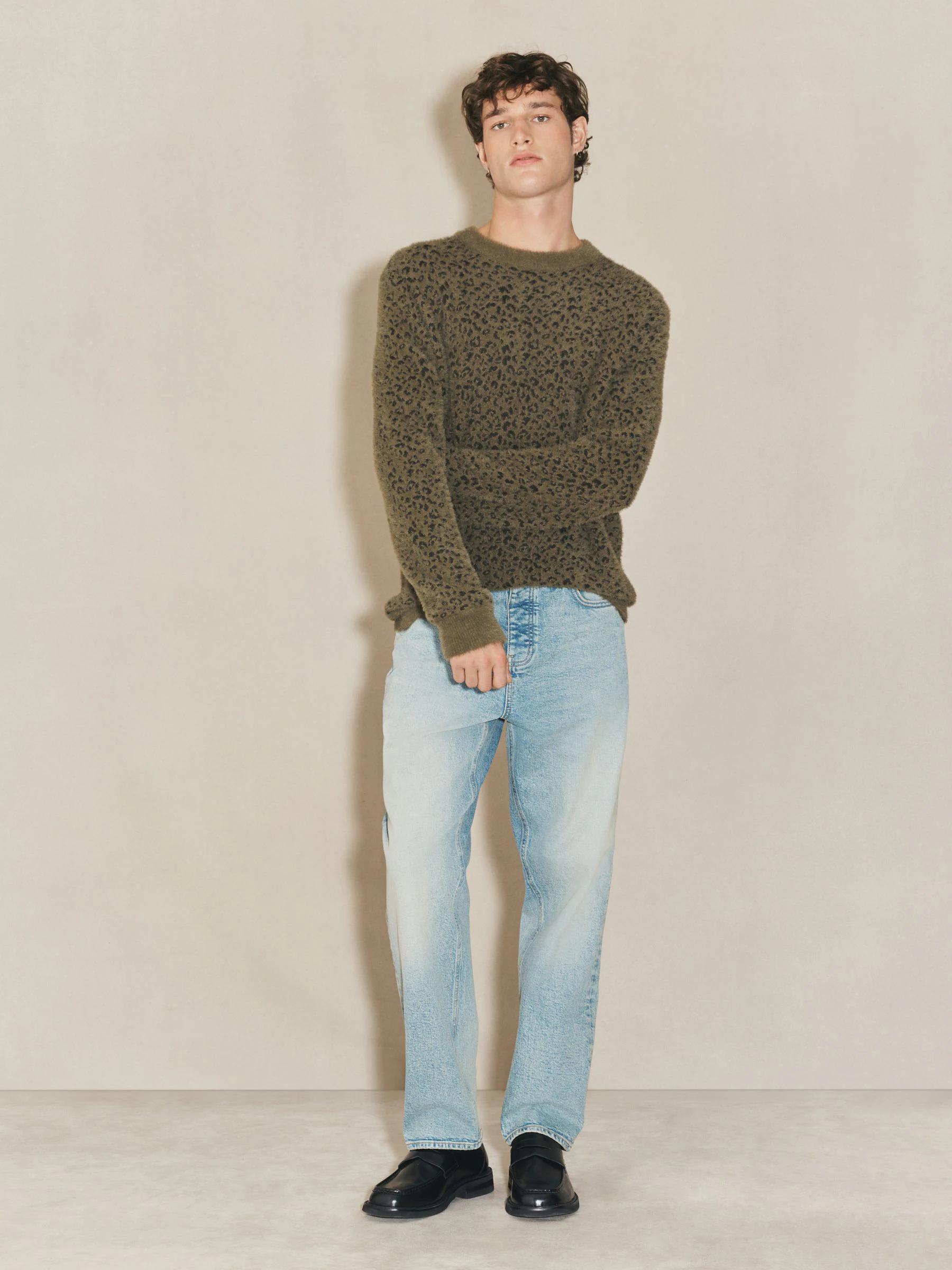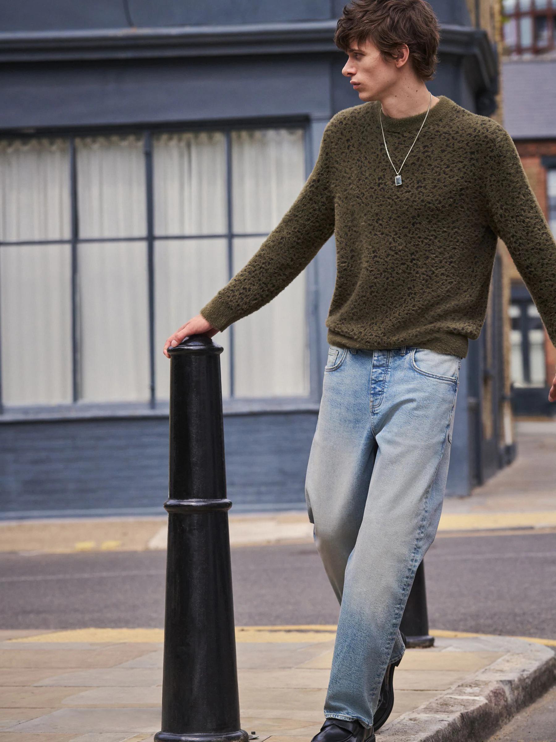Green EDIT Long Sleeve Knitted Leopard Print Jumper