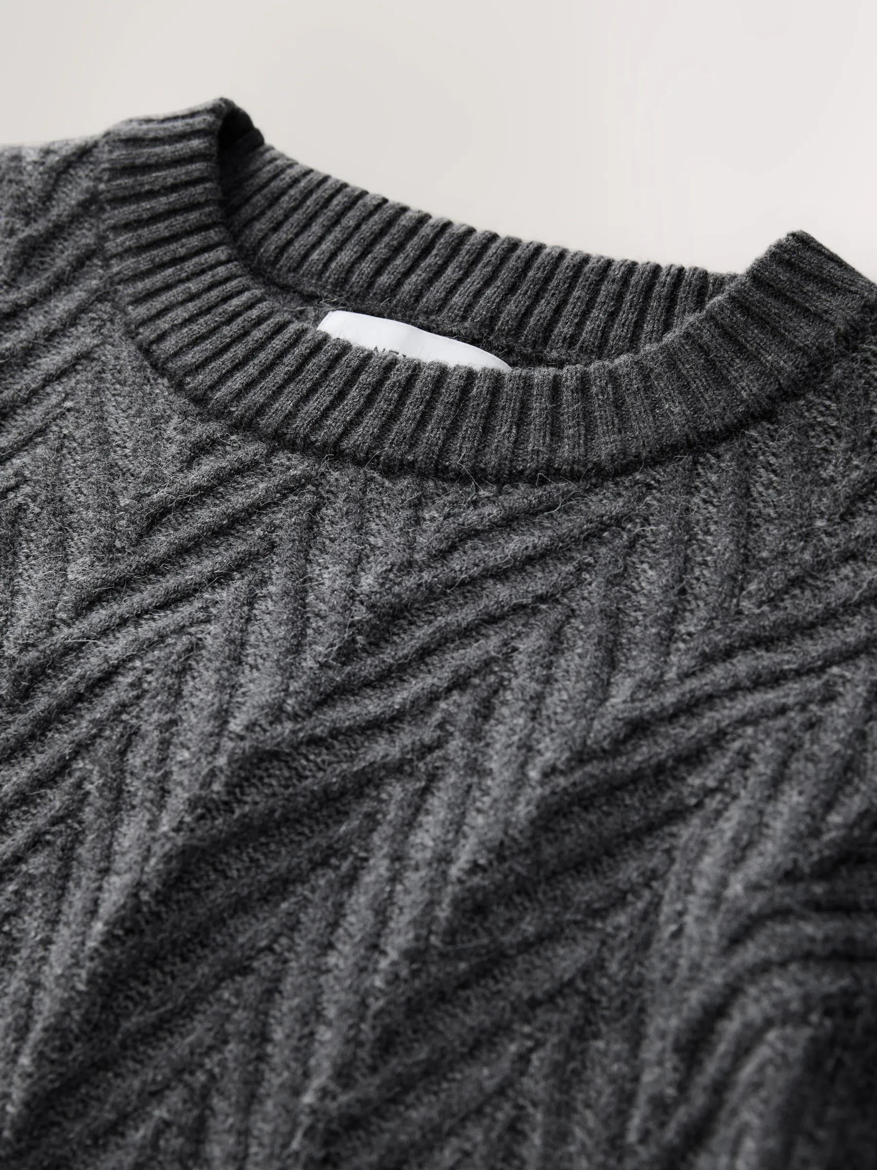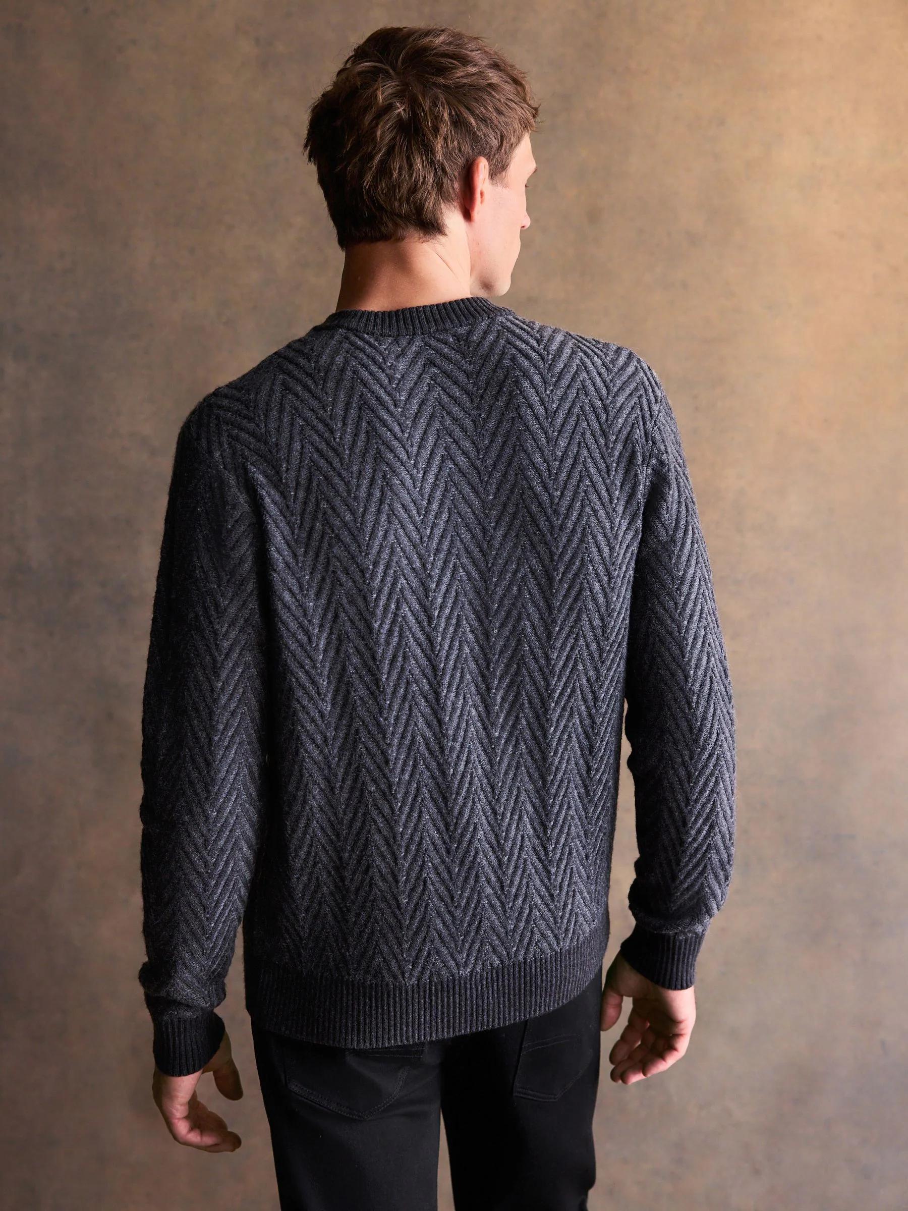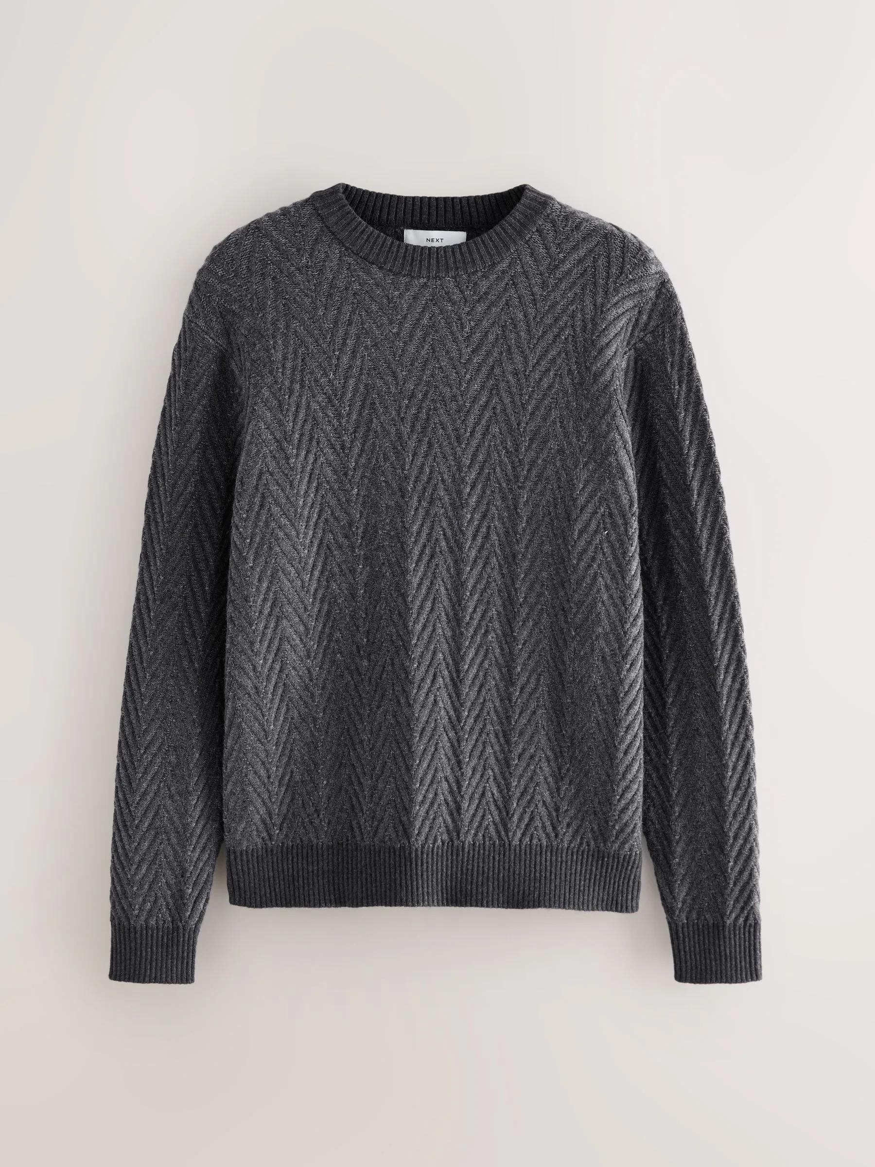 Charcoal Grey Regular Fit Herringbone Pattern Crew Jumper