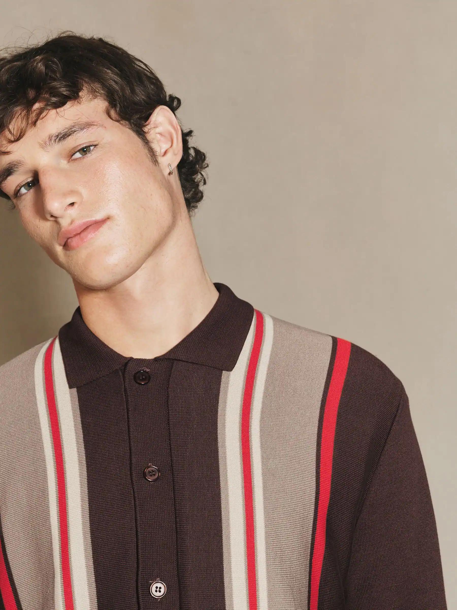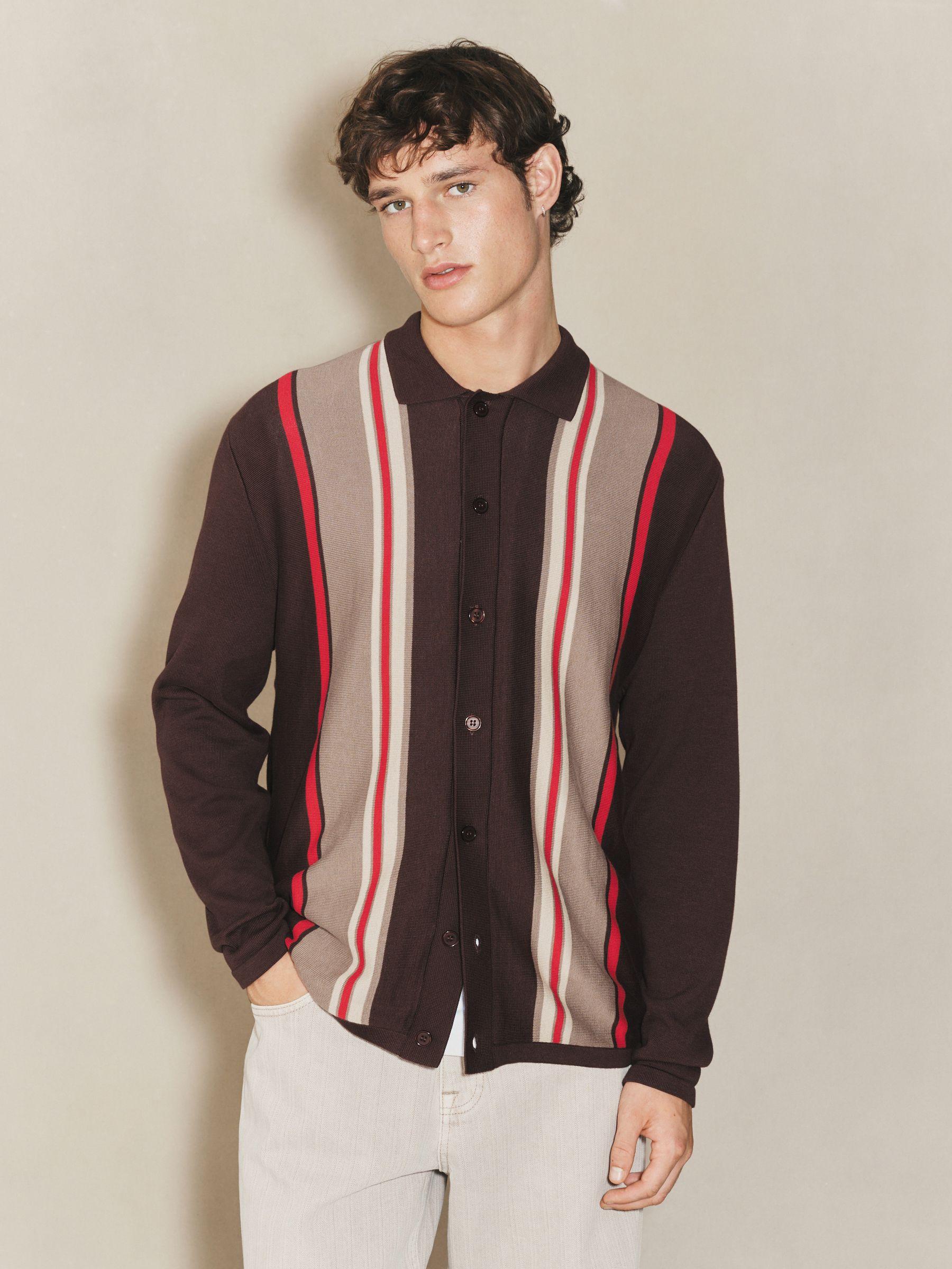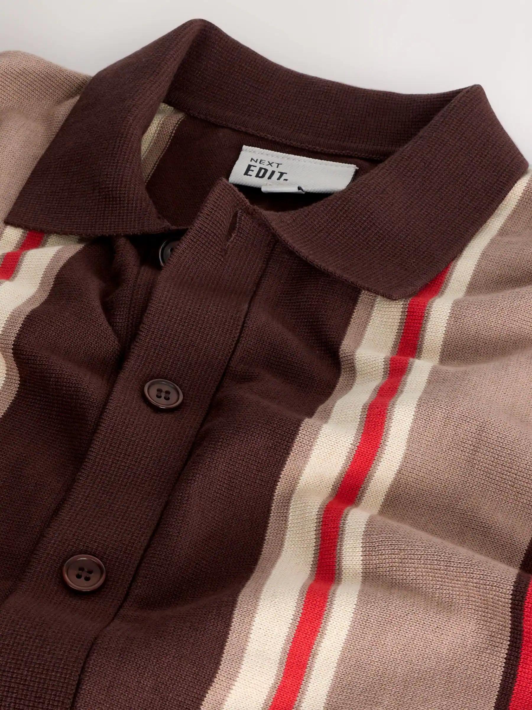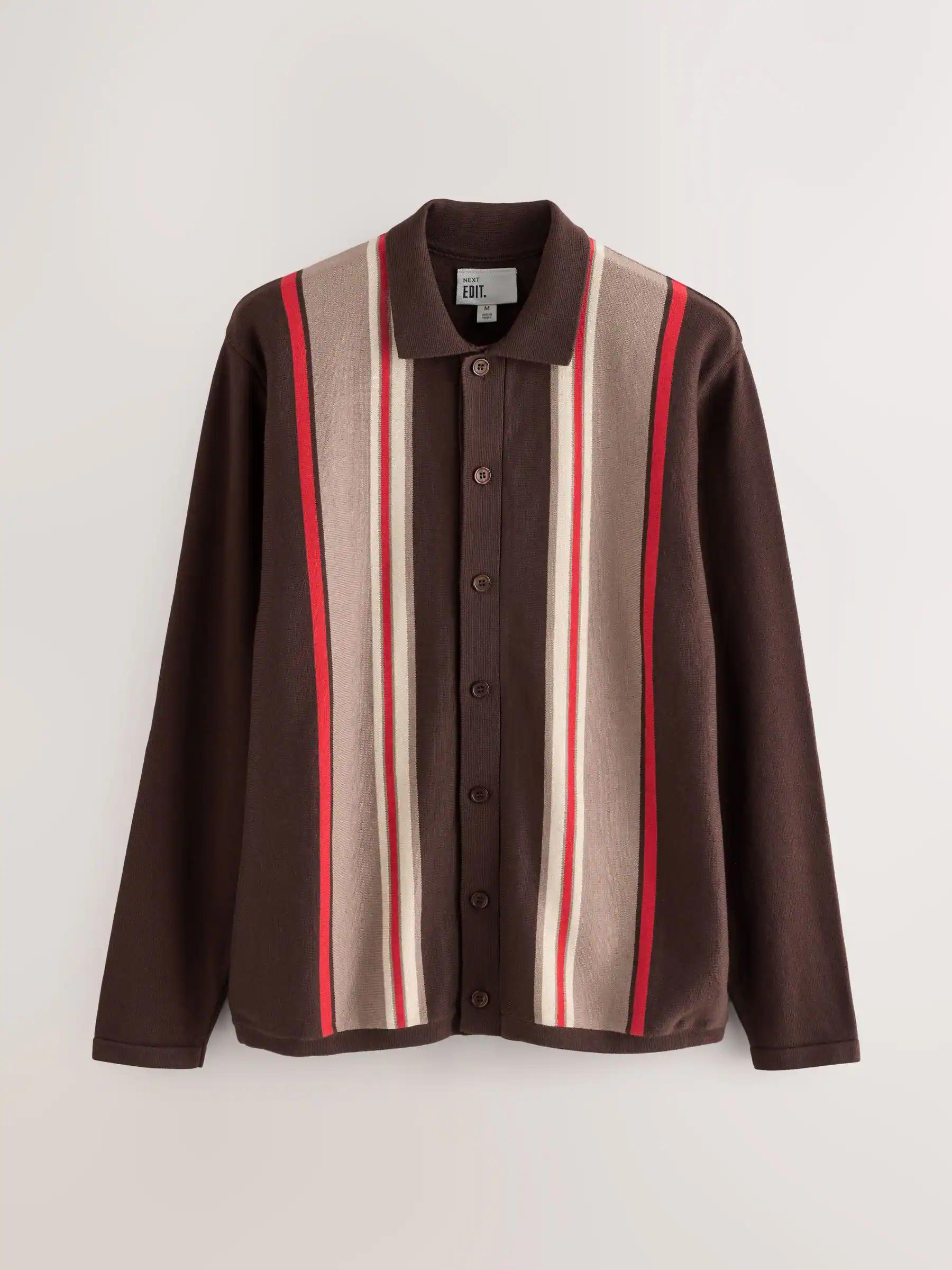 Brown EDIT Striped Long Sleeve Button Through Cardigan