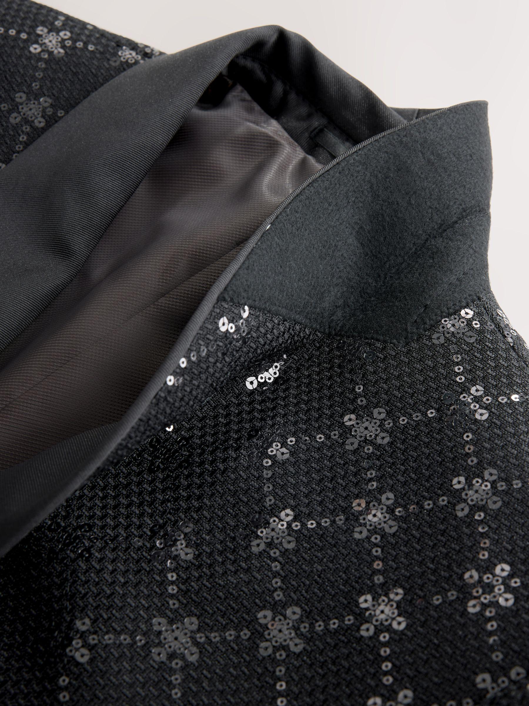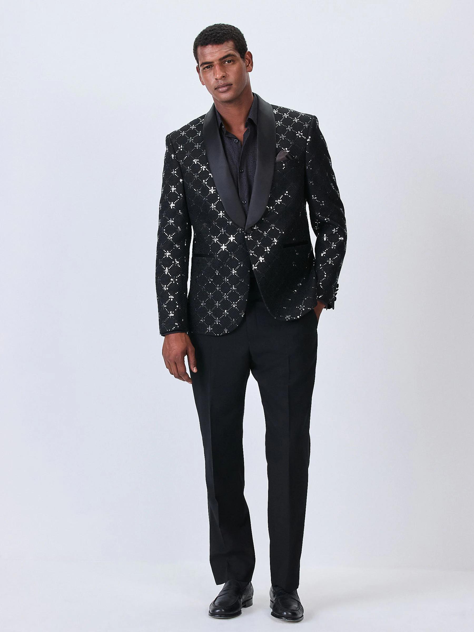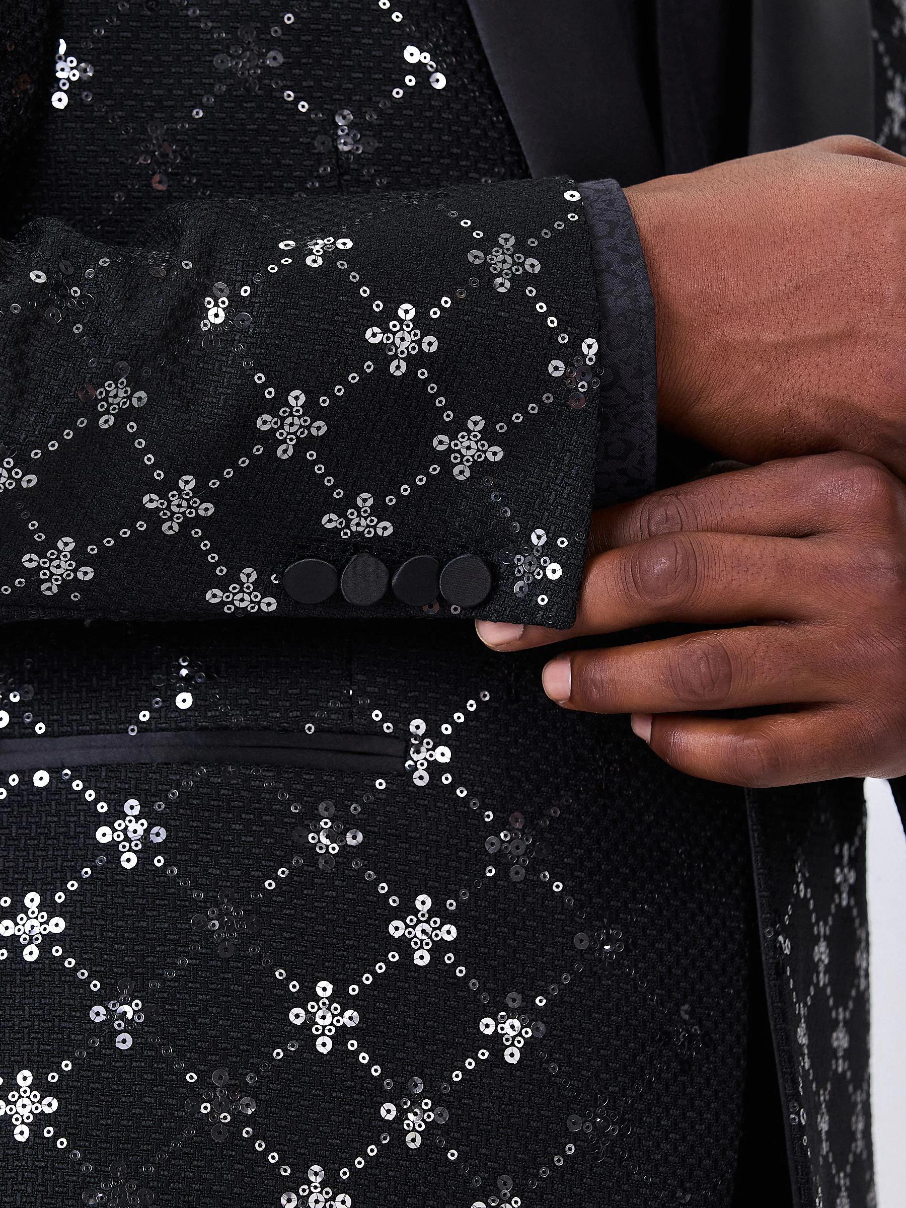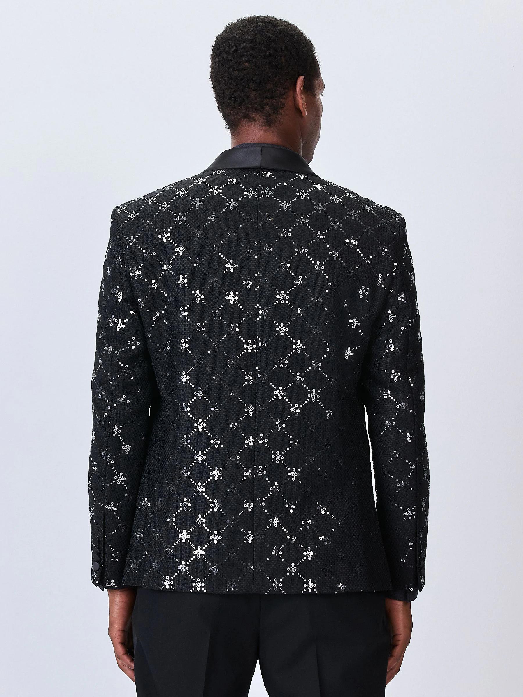 Black Regular Fit Sequin Geometric Pattern Blazer