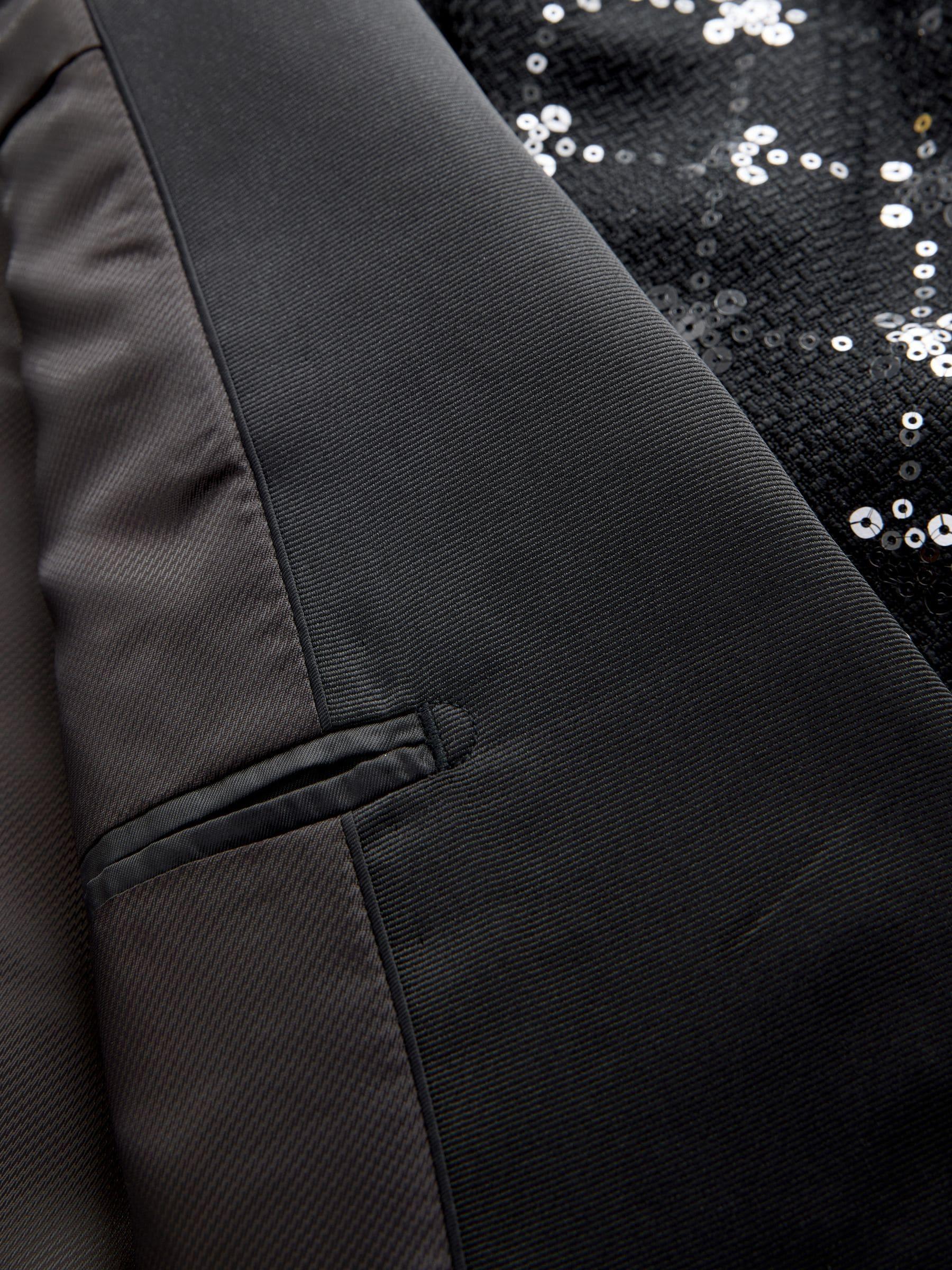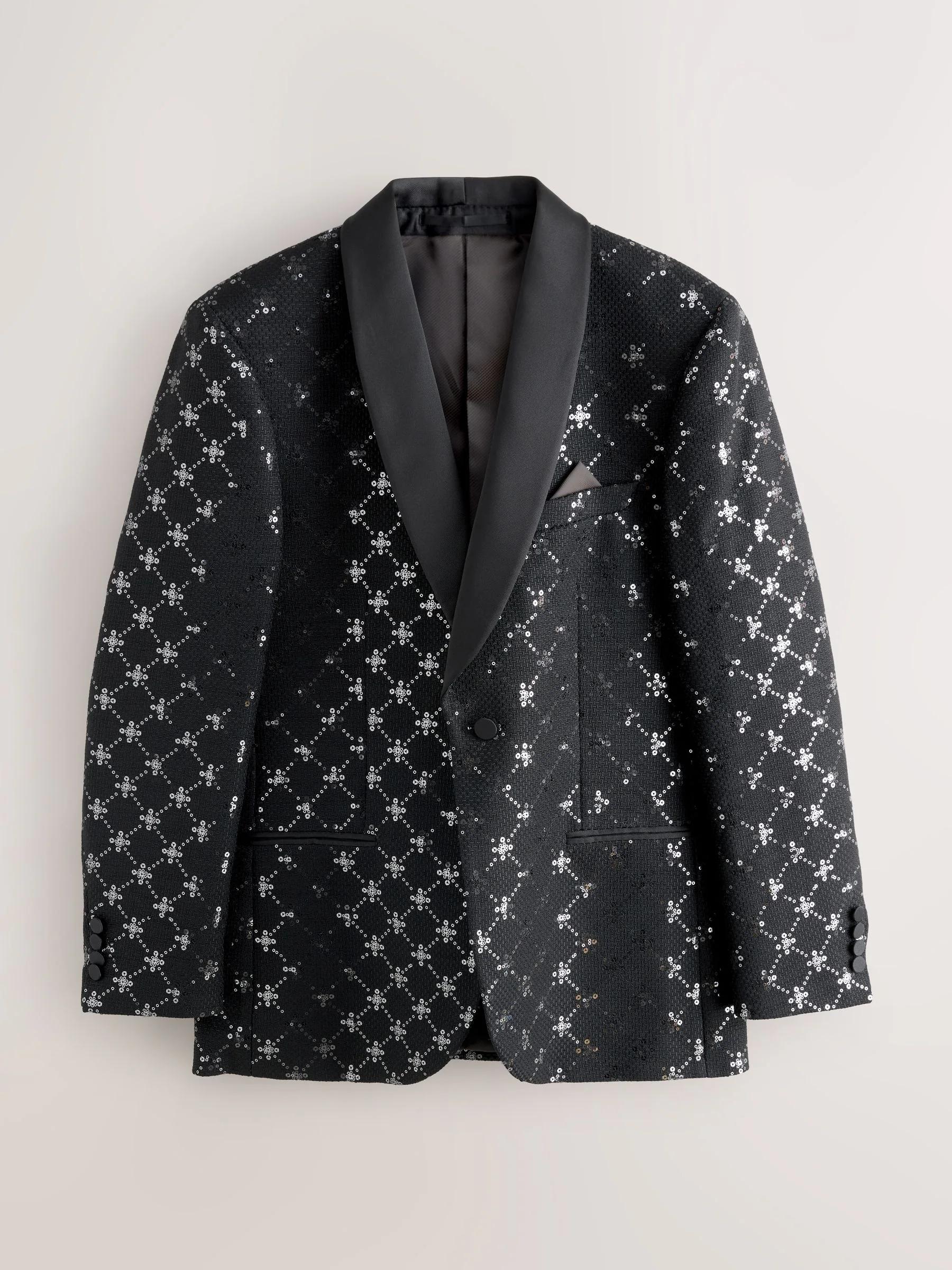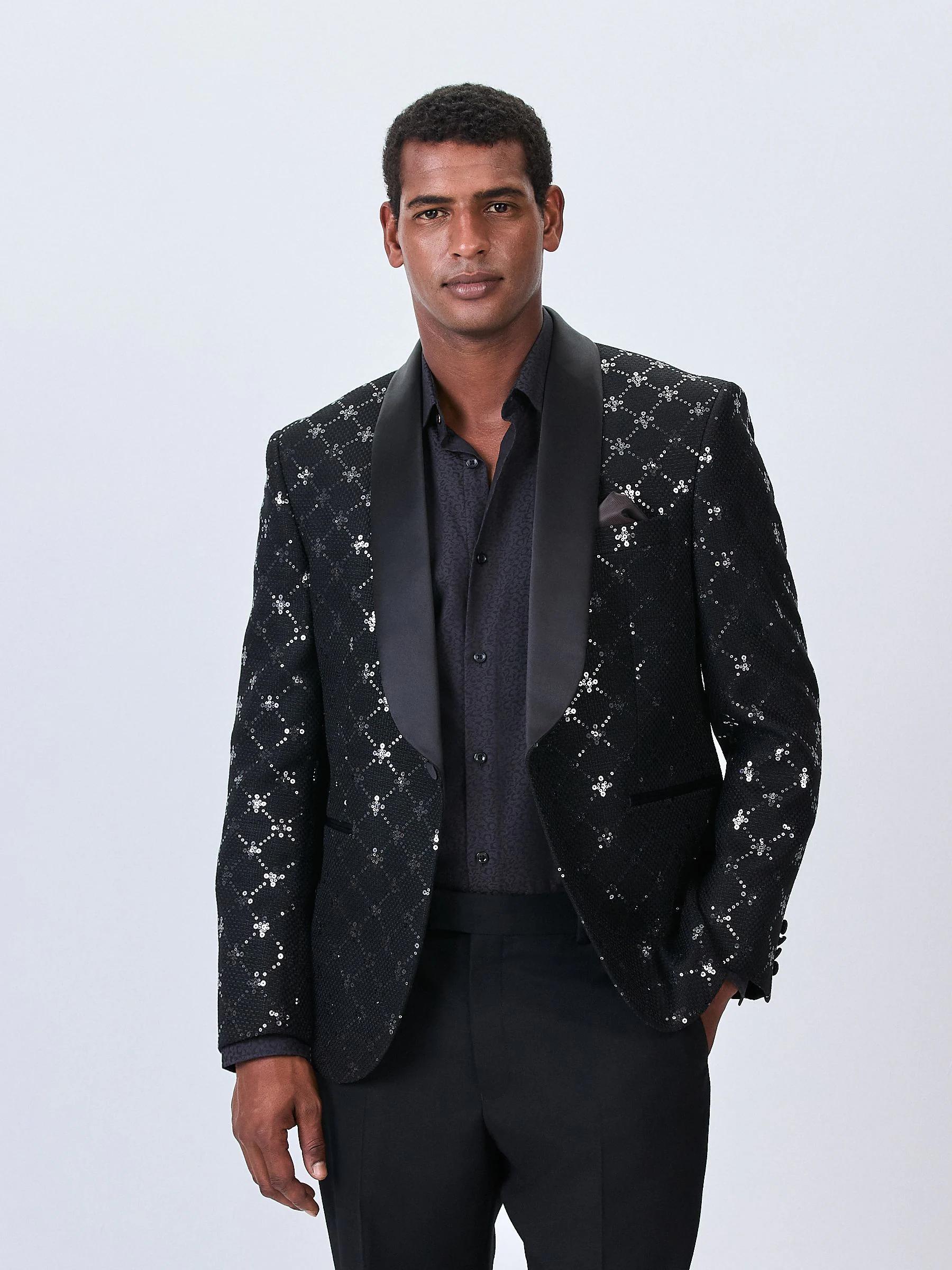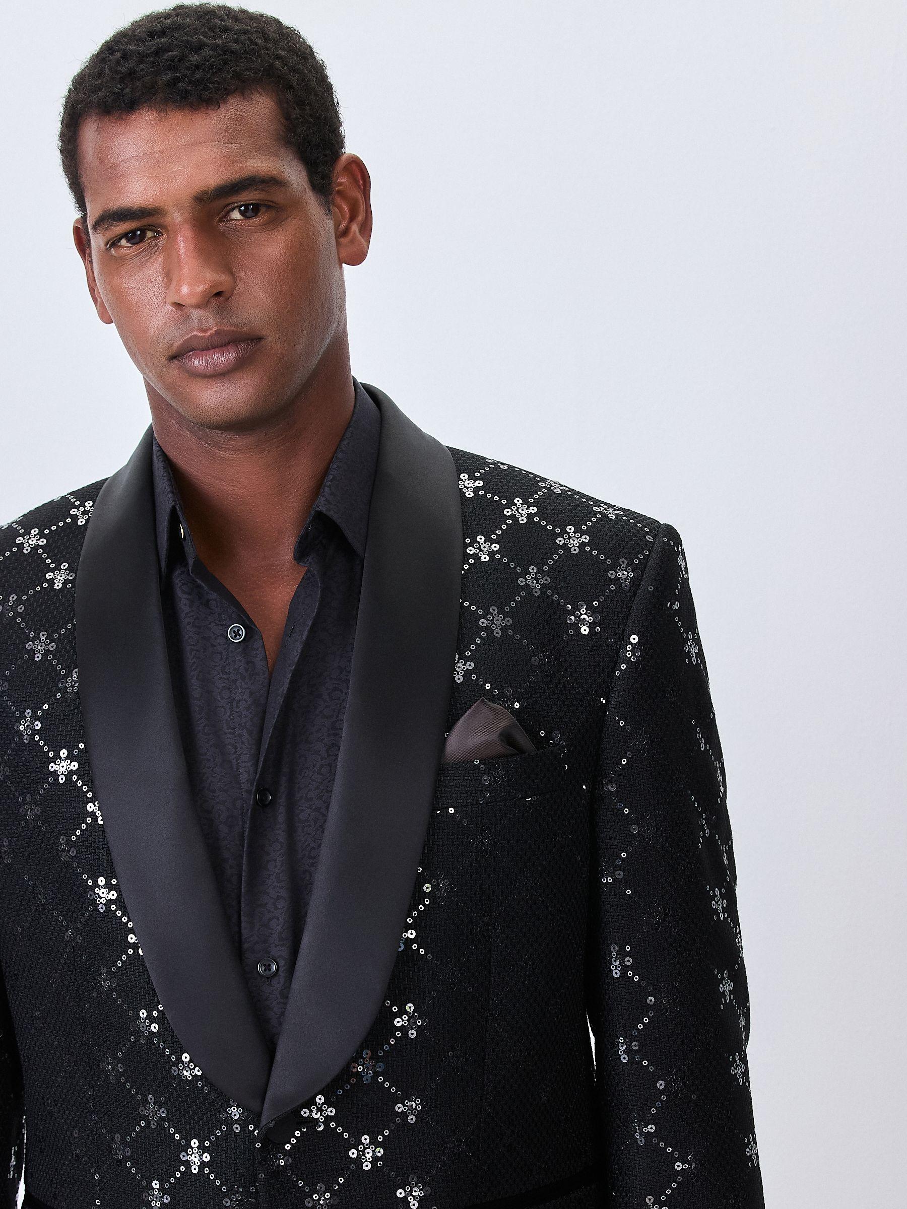 Black Regular Fit Sequin Geometric Pattern Blazer