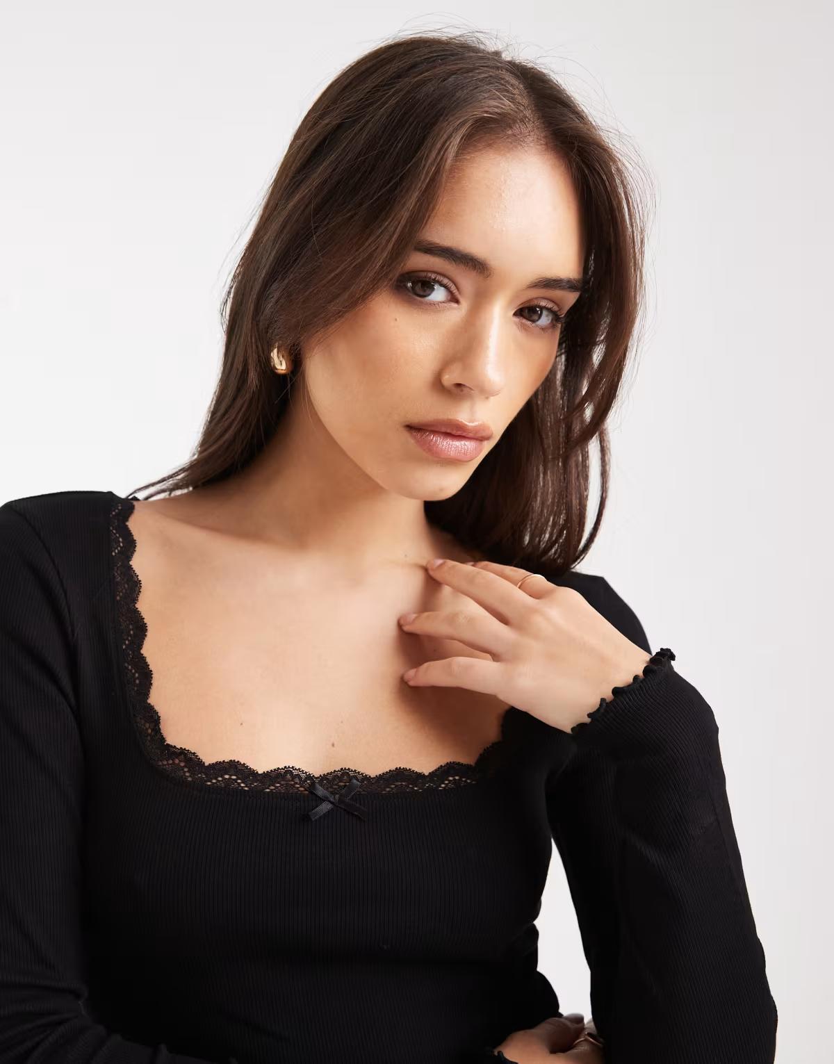 Lace Trim: 88% Polyamide, 12% Elastane, Shell: 96% Cotton, 4% Elastane.Miss Selfridge takes you from day to date night with its off-duty looks and full-on glamour. Solve what-to-wear dilemmas with its dresses and accessories that combine inherent femininity and an impressive attention to detail.Size & FitModel's height: 178cm/5'10"
