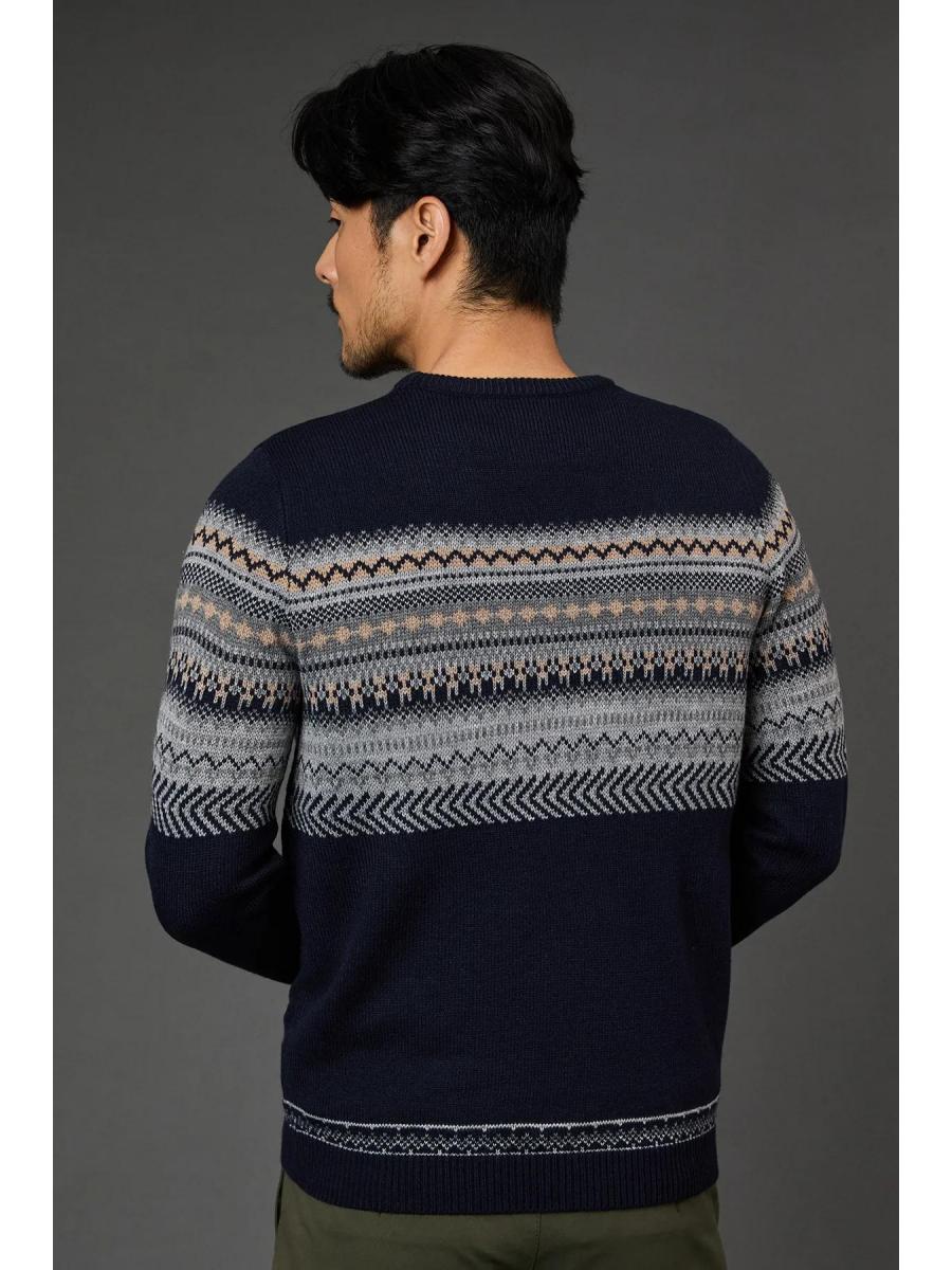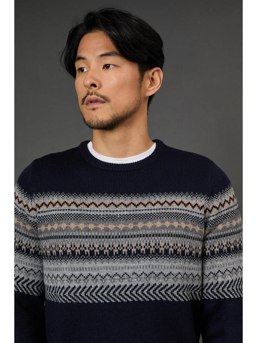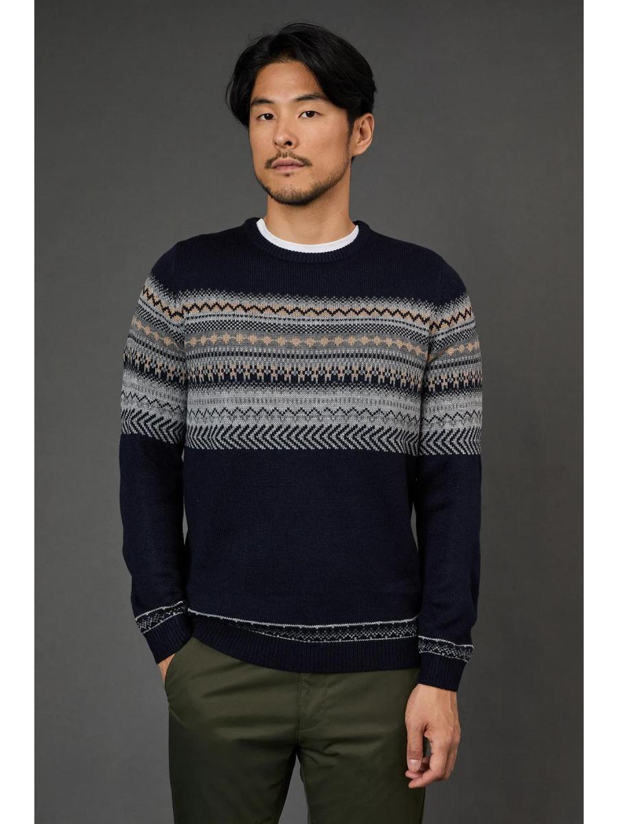 \u003cdiv\u003e\n \u003cul\u003e\n \u003cli\u003eClassic Fairisle pattern across the chest creates a distinctive heritage look\u003c/li\u003e\n \u003cli\u003eComfortable crew neck design with ribbed collar for a neat finish\u003c/li\u003e\n \u003cli\u003eRibbed cuffs and hem provide a secure, comfortable fit\u003c/li\u003e\n \u003cli\u003eVersatile design that pairs perfectly with chinos or jeans\u003c/li\u003e\n \u003cli\u003eTraditional pattern placement allows for easy styling with both casual and smart-casual outfits\u003c/li\u003e\n \u003c/ul\u003e\n \u003cp\u003eThis Burton Fairisle jumper combines timeless British style with contemporary comfort. The traditional pattern sits perfectly across the chest, creating visual interest while maintaining a clean, masculine silhouette. As demonstrated in the images, it pairs brilliantly with olive chinos and white trainers for a relaxed weekend look that's perfect for pub gatherings or family events. The navy base provides versatility, making it an excellent choice for casual outings during the cooler months. Layer it over a simple t-shirt for added warmth, or wear it with a collared shirt for occasions requiring a smarter appearance. This jumper strikes the ideal balance between classic design and everyday wearability - a reliable staple for the man who appreciates enduring style over fleeting trends. Ideal for countryside walks, casual Friday office wear, or simply meeting mates for a pint at your local.\u003c/p\u003e\n\u003c/div\u003e