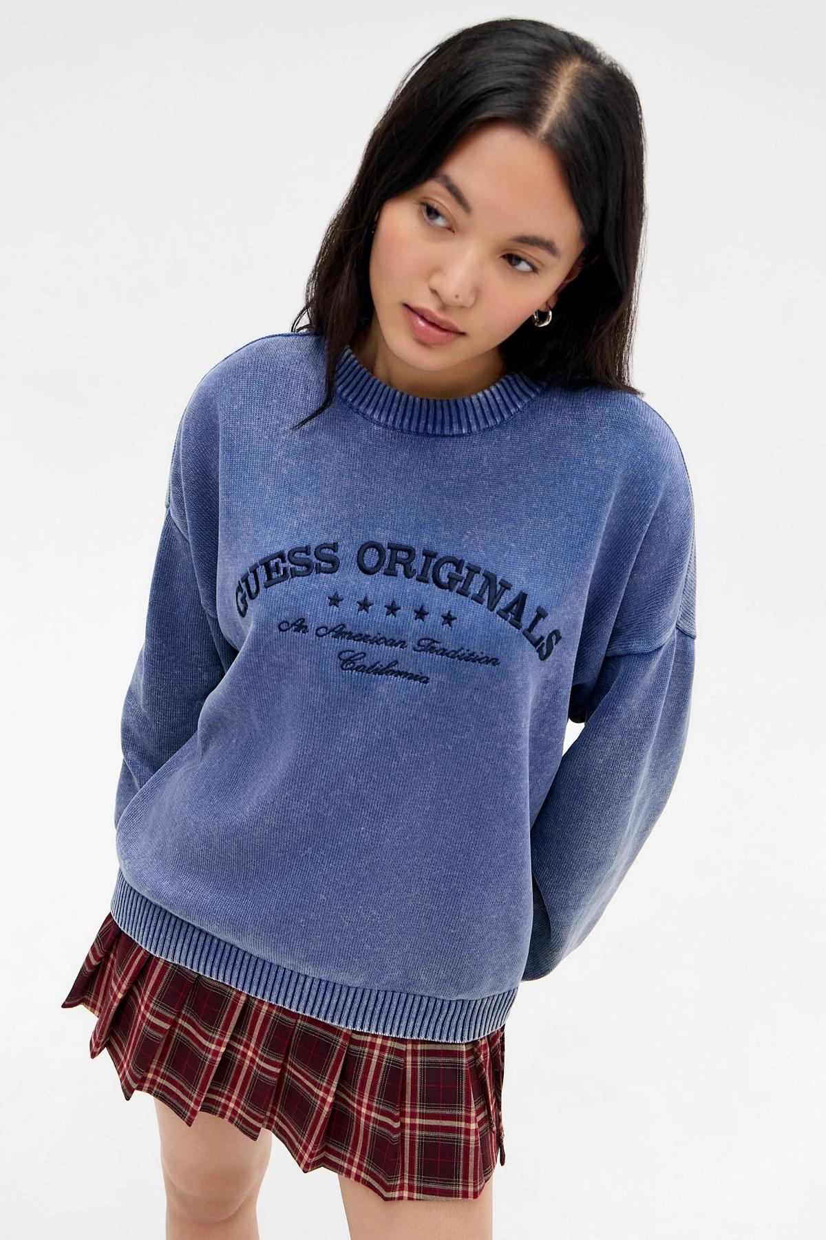 Guess Navy Knitted Embroidered Logo Jumper