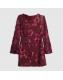 Red Floral Embroidered Long Sleeve Mini Dress
