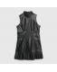 Black Faux Leather Pleated Hem Mini Dress