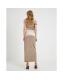 Brown Velvet Sleeveless Drape Midi Dress