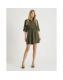 Khaki Long Sleeve Mini Shirt Dress
