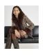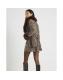 Brown Faux Fur Collar Check Wrap Coat