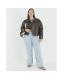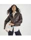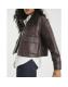Brown Faux Leather Funnel Neck Bomber Jacket