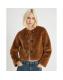 Brown Faux Fur Collarless Jacket