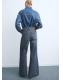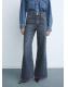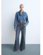 Tejido de algodón estilo tejano vaquero. Diseño largo. Diseño wide leg. Tiro alto. Trabillas. Cinco bolsillos. Cierre de botones
