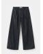Tejido de algodón estilo tejano vaquero. Diseño largo. Diseño wide leg. Tiro medio. Trabillas. Detalle de pinzas. Dos bolsillos laterales. Dos bolsillos de parche en la parte posterior. Cierre oculto de botón, gancho y cremallera