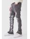 Jeans | Skinny Stretch Stacked Distressed Embroidered Gusset Jeans | boohooMAN