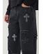 Discover Relaxed Fit Rhinestone Cross Ripped Washed Jeans available to buy online at boohoo.com. Available with quick delivery and easy return options. Shop now!