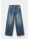 Tejido de algodón estilo tejano vaquero. Diseño largo. Diseño recto. Adorno de tachuelas. Tiro medio. Trabillas. Cinco bolsillos. Cierre de botón y cremallera. Esta prenda pertenece a nuestra colección de fiesta y evento, diseñada para elevar tus looks en ocasiones especiales