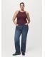 Tejido de algodón estilo tejano vaquero. Diseño largo. Diseño recto. Tiro medio. Trabillas. Cinco bolsillos. Cierre delantero de cremallera y botón. Largo interior 80 cm. Disponible Plus