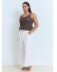 Tejido de algodón estilo tejano vaquero. Diseño crop. Diseño wideleg. Tiro medio. Trabillas. Cinco bolsillos. Bajo vuelto. Cierre de botón y cremallera. Largo interior 63 cm