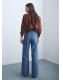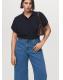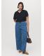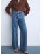 Tejido de algodón estilo tejano vaquero. Diseño largo. Diseño wideleg. Tiro alto. Trabillas. Dos bolsillos de parche en la parte delantera. Cierre delantero de cremallera y botón. Disponible Plus