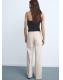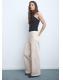 Tejido de algodón estilo tejano vaquero. Diseño largo. Diseño wide leg. Tiro alto. Trabillas. Dos bolsillos de parche en la parte delantera. Cierre delantero de cremallera y botón. Tejido confort con elasticidad