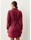 Burgundy Red Spot Long Sleeve Mini Tie Waist Shirt Dress