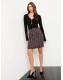 Lipsy Black/Burgundy Mini Boucle Check 2-in-1 V-Neck Knitted Dress