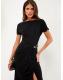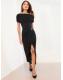 Lipsy Black Slash Neck Jersey Hardware Ruched Midi Dress
