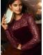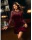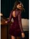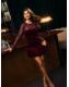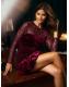 Lipsy Burgundy Red Velvet Embellished Sequin Long Sleeve Puffball Mini Dress