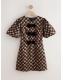 Leopard Animal Print Puff Sleeve Velvet Bow Mini Dress
