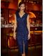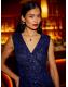 Yumi Blue Sequin Fitted Wrap With Split Hem Dress