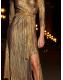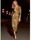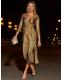 Sosandar Gold Metallic Plisse Wrap Front Fit & Flare Jersey Dress