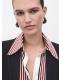Con un diseño recto y combinado, esta prenda presenta un patrón de rayas con cuello camisero y manga larga con puños abotonados. Se cierra mediante botones en la parte delantera. Disponible en tallas Plus